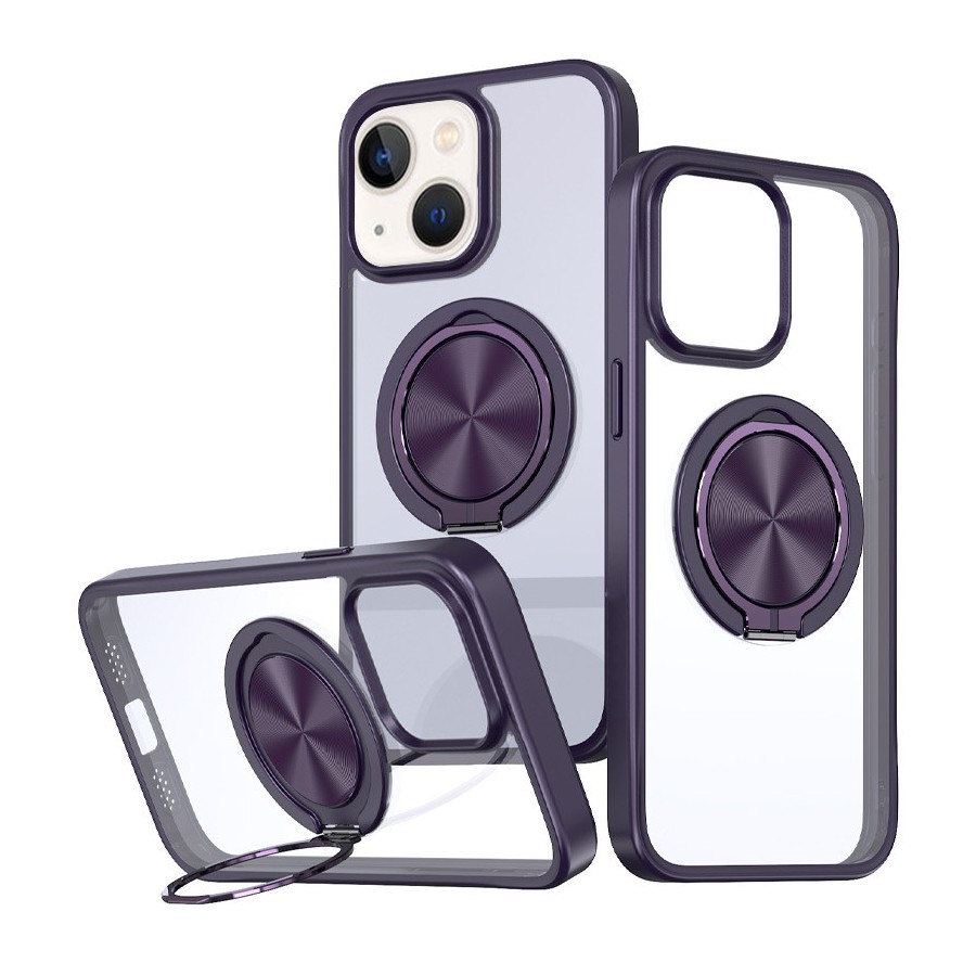 TPU+PC чохол Metal Ring with MagSafe для Apple iPhone 15 (6.1") Темно-фіолетовий
