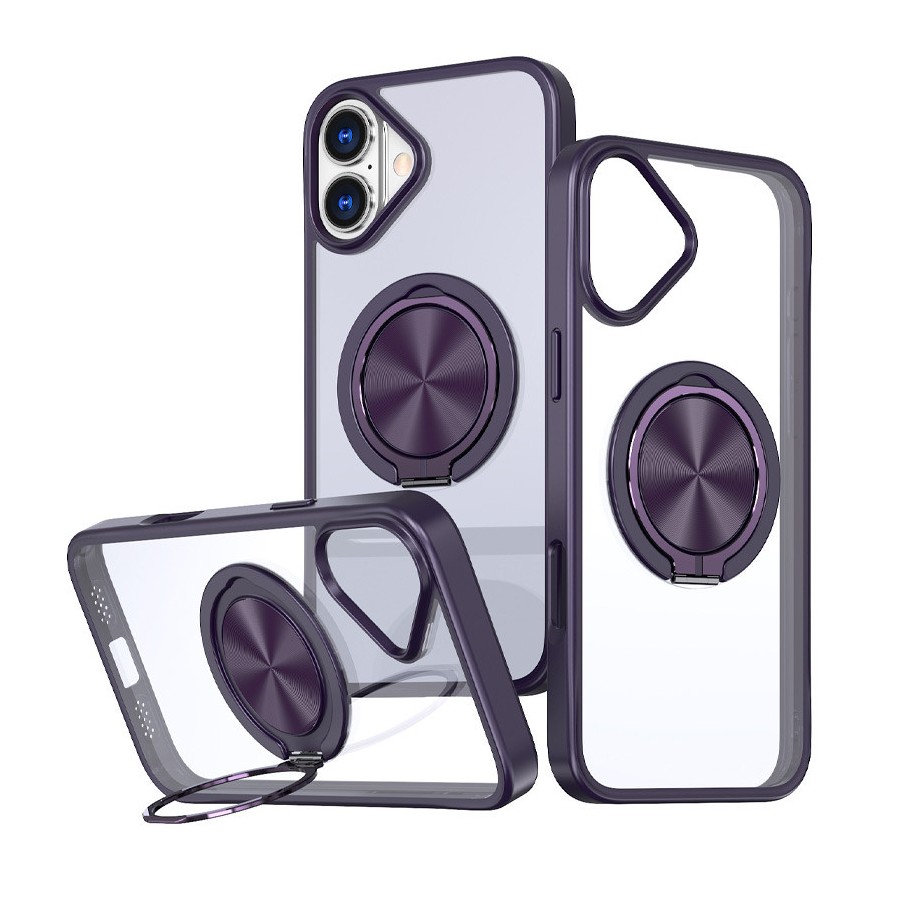 TPU+PC чохол Metal Ring with MagSafe для Apple iPhone 16 (6.1") Темно-фіолетовий
