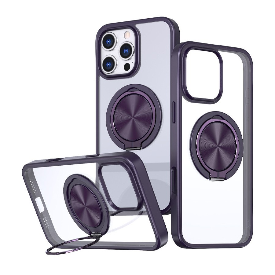 TPU+PC чохол Metal Ring with MagSafe для Apple iPhone 16 Pro (6.3") Темно-фіолетовий