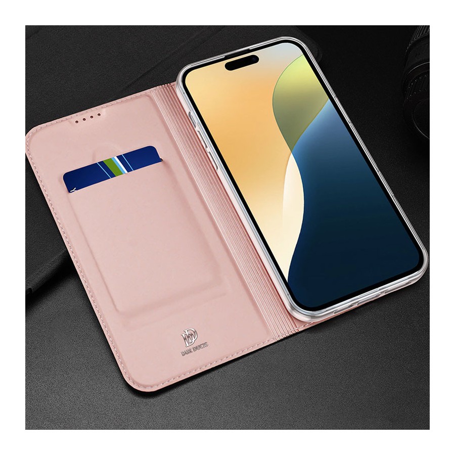 Чохол-книжка Dux Ducis з кишенею для візиток для Apple iPhone 16 Pro (6.3") Rose Gold