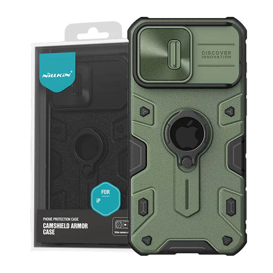 TPU+PC чохол Nillkin CamShield Armor (шторка на камеру) для Apple iPhone 15 Pro Max (6.7") Зелений
