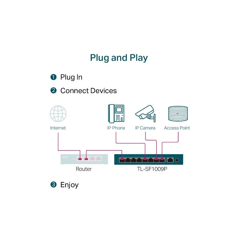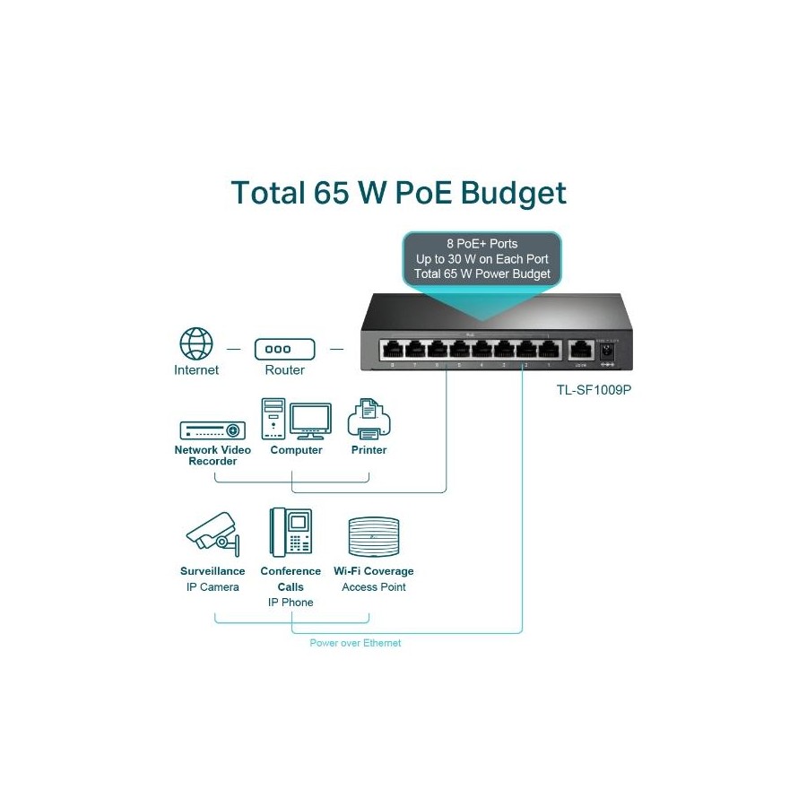 9-портовий настільний комутатор з 8 РоЕ+ портами, TL-SF1009P