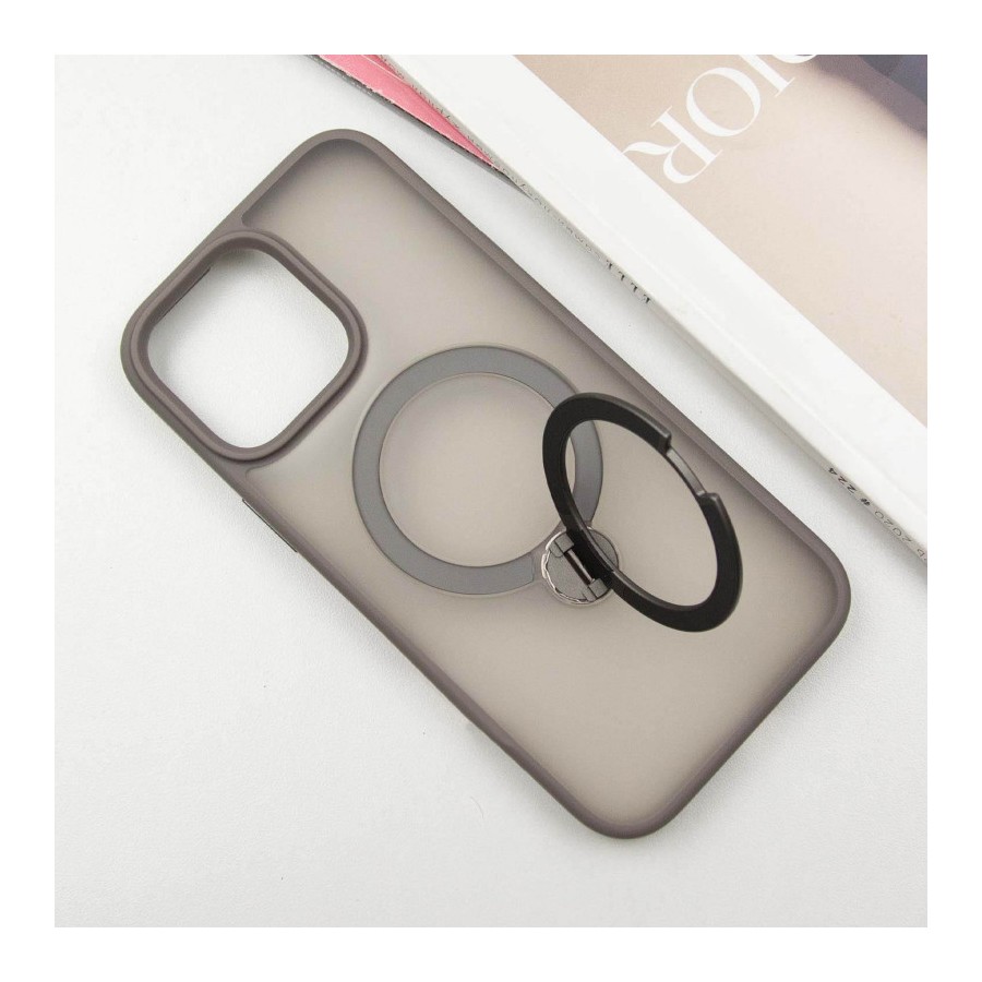 TPU+PC чохол Metal Buttons with MagSafe Colorful HQ Ring для Apple iPhone 15 (6.1") Grey