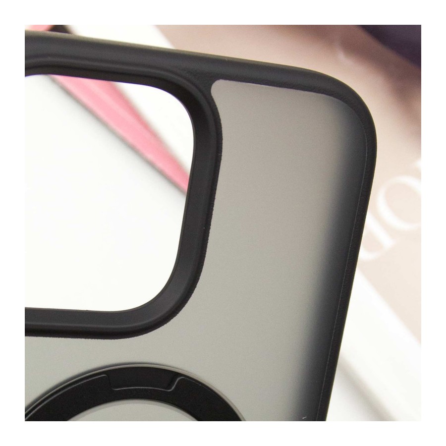 TPU+PC чохол Metal Buttons with MagSafe Colorful HQ Ring для Apple iPhone 15 Pro Max (6.7") Black