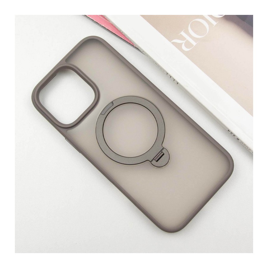 TPU+PC чохол Metal Buttons with MagSafe Colorful HQ Ring для Apple iPhone 15 Pro Max (6.7") Grey