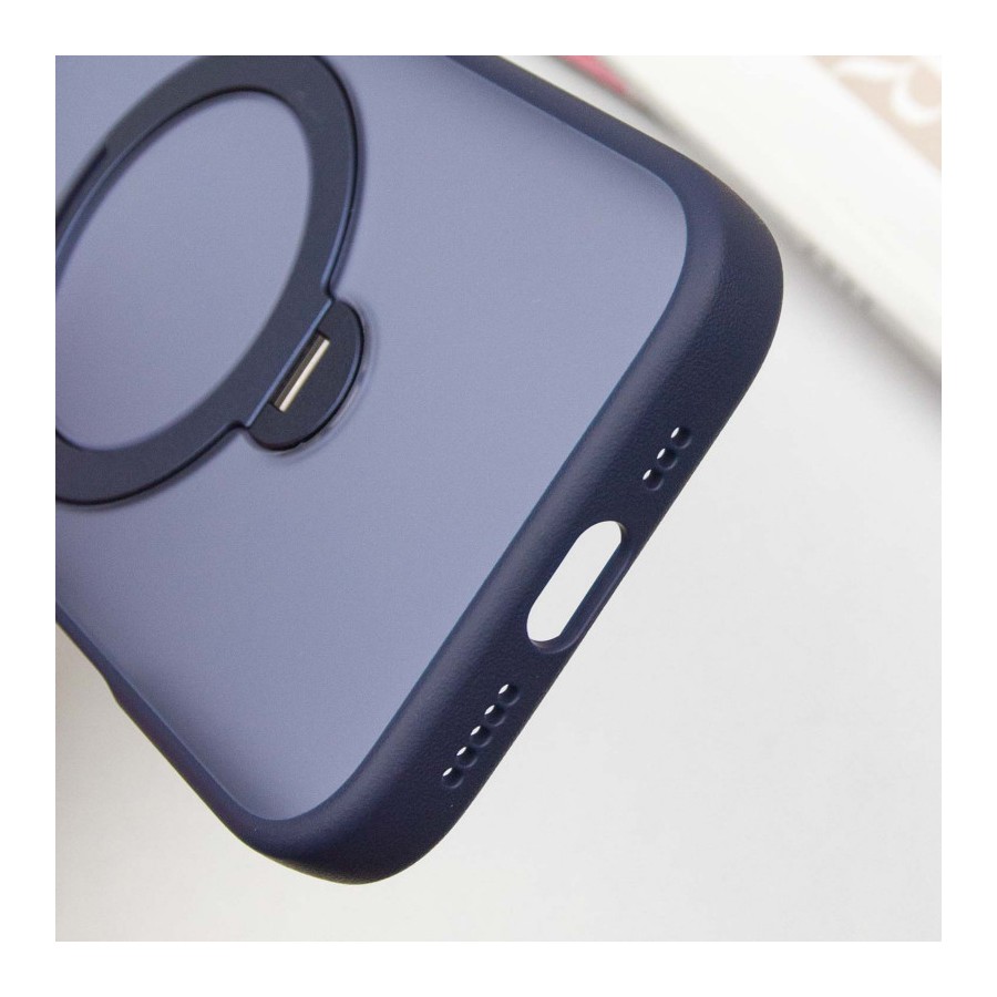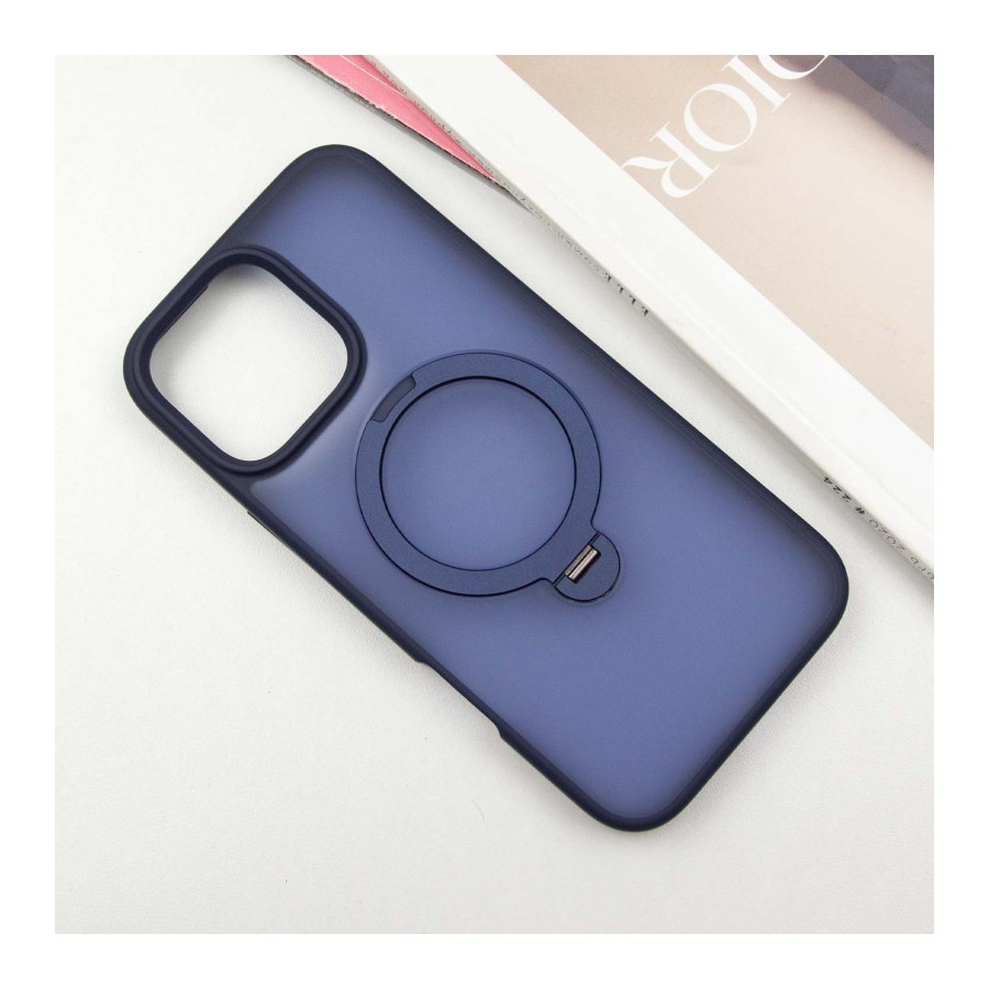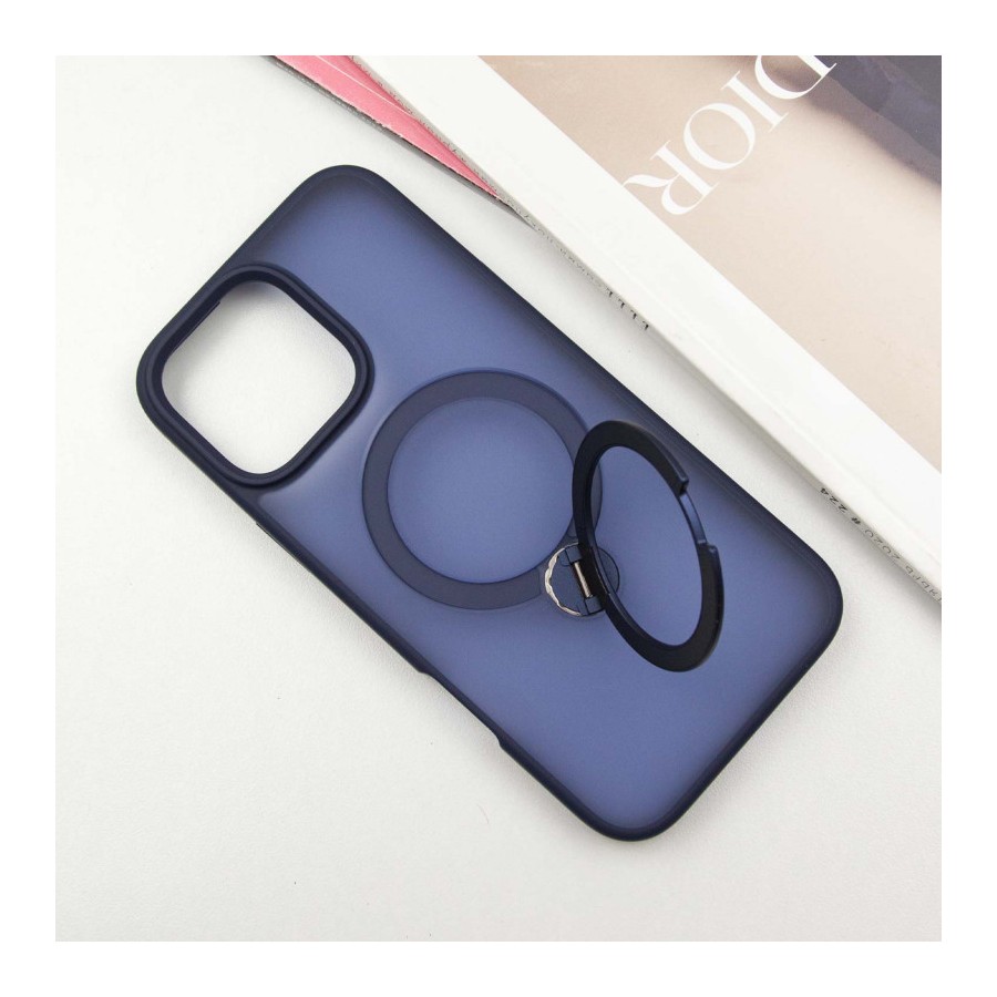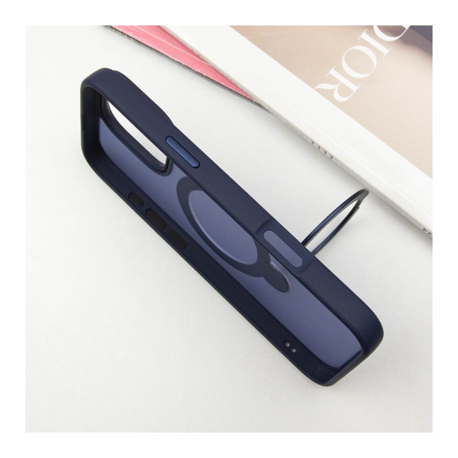 TPU+PC чохол Metal Buttons with MagSafe Colorful HQ Ring для Apple iPhone 16 Pro (6.3") Dark Blue