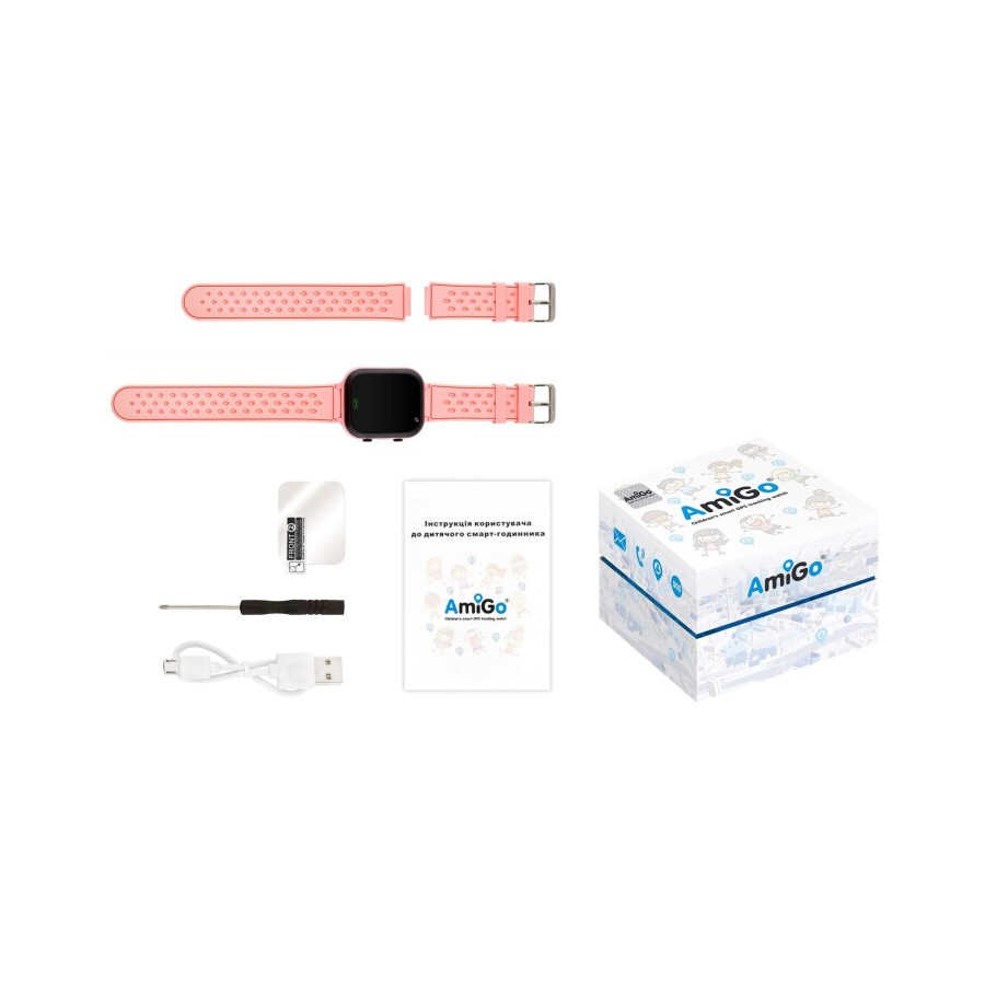 Приємні фішки AmiGo GO009 Camera + LED WIFI, запасний змінний ремінець, попередньо встановлені навчальні математичні ігри, вибір мови меню та інтерфейсу, будильник, крокомір, беззвучний режим на час уроків, галерея знімків в годиннику, та інше.