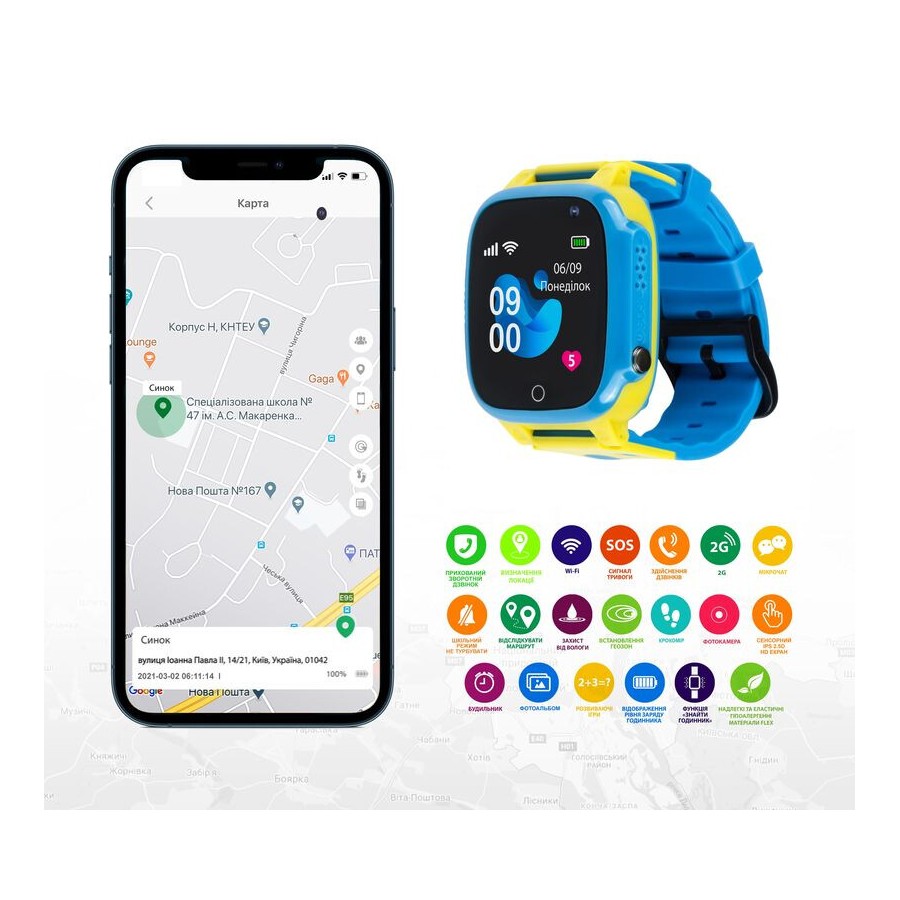 Новинка серед дитячого смарт-годинника AmiGo GO008 GLORY, в яскравому патріотичному дизайні, з вбудованим WIFI, для більш точного позиціонування.
