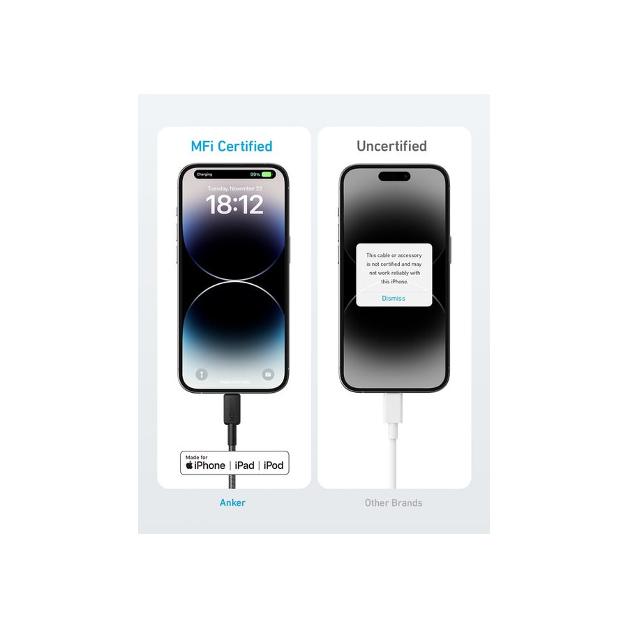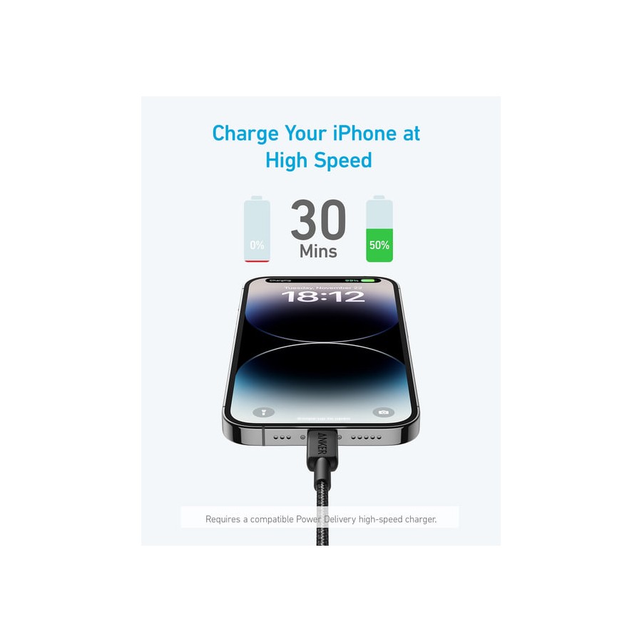 кабель ANKER 322 USB-C to Lightning - 1.8m Nylon (Чорний)