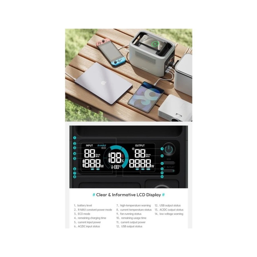 Економія енергії, термін служби найдовше. Автоматичний режим ECO – більше не турбуйтеся про те, що ви забудете вимкнути ECO DC OUTLET. Romoss S300 автоматично вимкнеться і перейде в режим сну після години простою, знижуючи енергоспоживання в режимі очікування для економії енергії. При вимкненому режимі ECO станція вимикається, коли закінчується електрика.