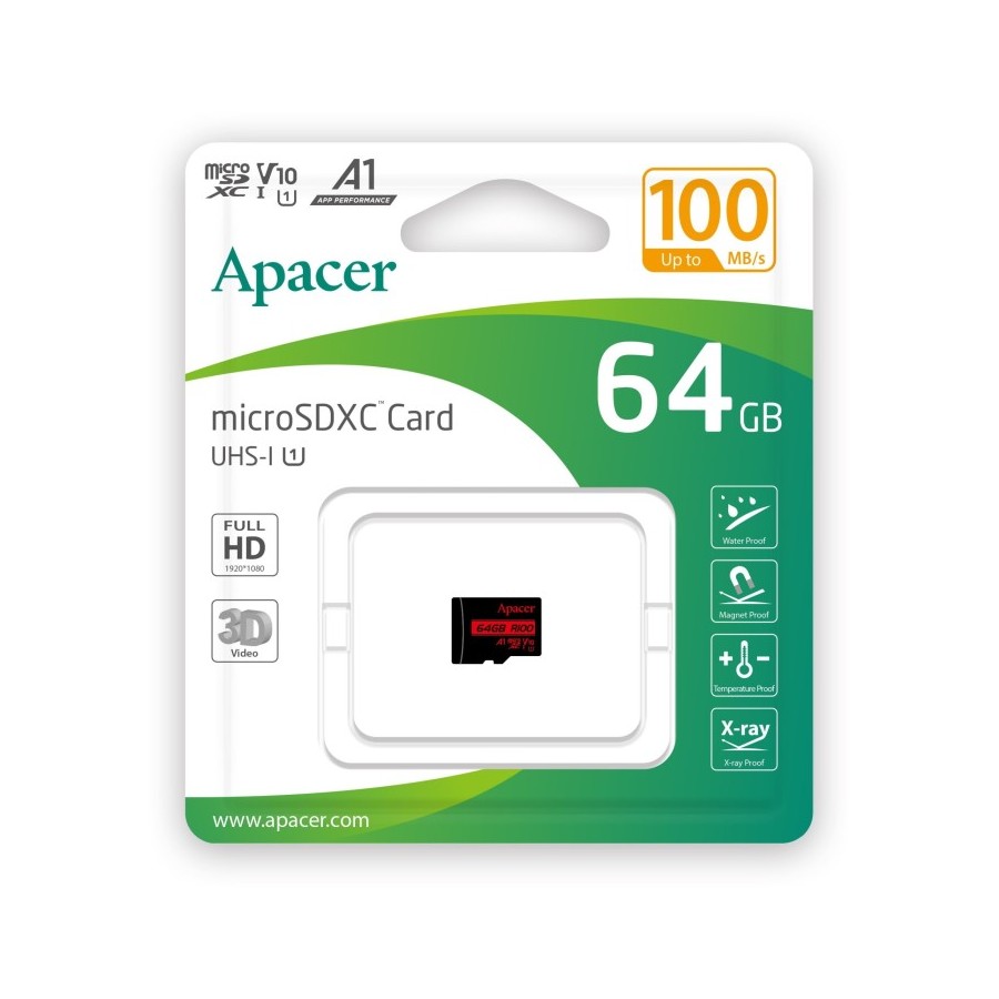 Купити карту пам'яті Apacer microSDXC UHS-I 64GB R100 V10 A1 (AP64GMCSX10UB-RA) ви можете, оформивши замовлення у нас на сайті, а також по телефону гарячої лінії.