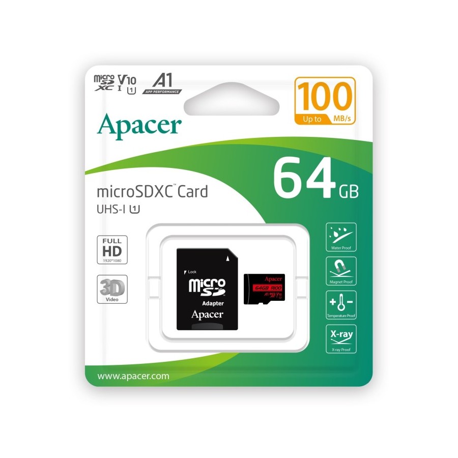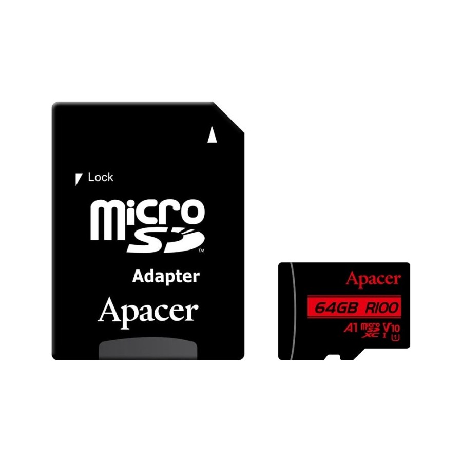 Купити карту пам'яті Apacer microSDXC UHS-I 64GB R100 V10 A1 + SD adapter (AP64GMCSX10UB-R) ви можете, оформивши замовлення у нас на сайті, а також по телефону гарячої лінії.
