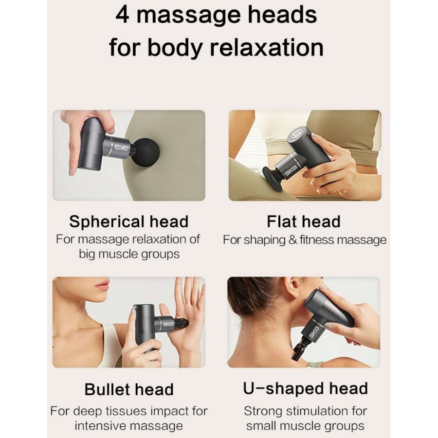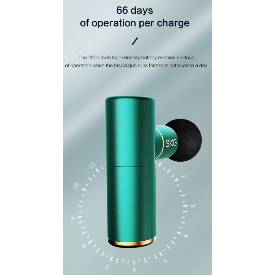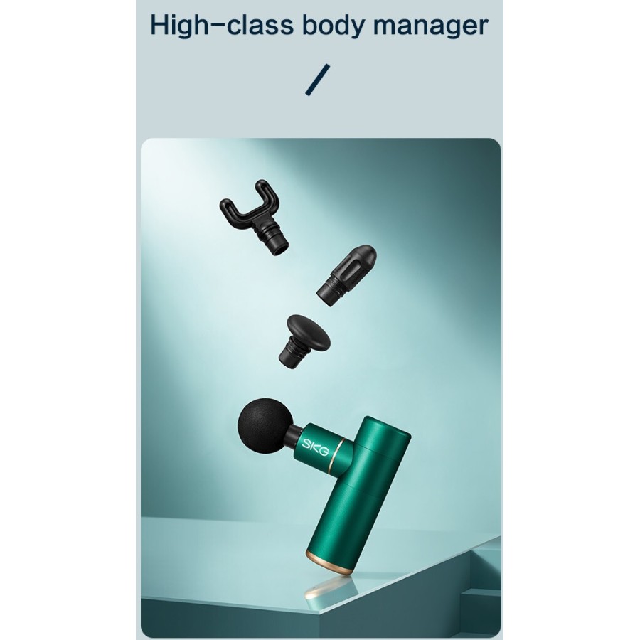 SKG Gun F3mini green - електричний міні-масажер для розслаблення м'язів і полегшення м'язового болю. Завдяки компактним розмірам з масажером дуже зручно працювати, а можливість змінювати насадки, швидкість і рівень інтенсивності дозволяє зробити масаж і розслаблюючі процедури для будь-якого користувача максимально ефективними.