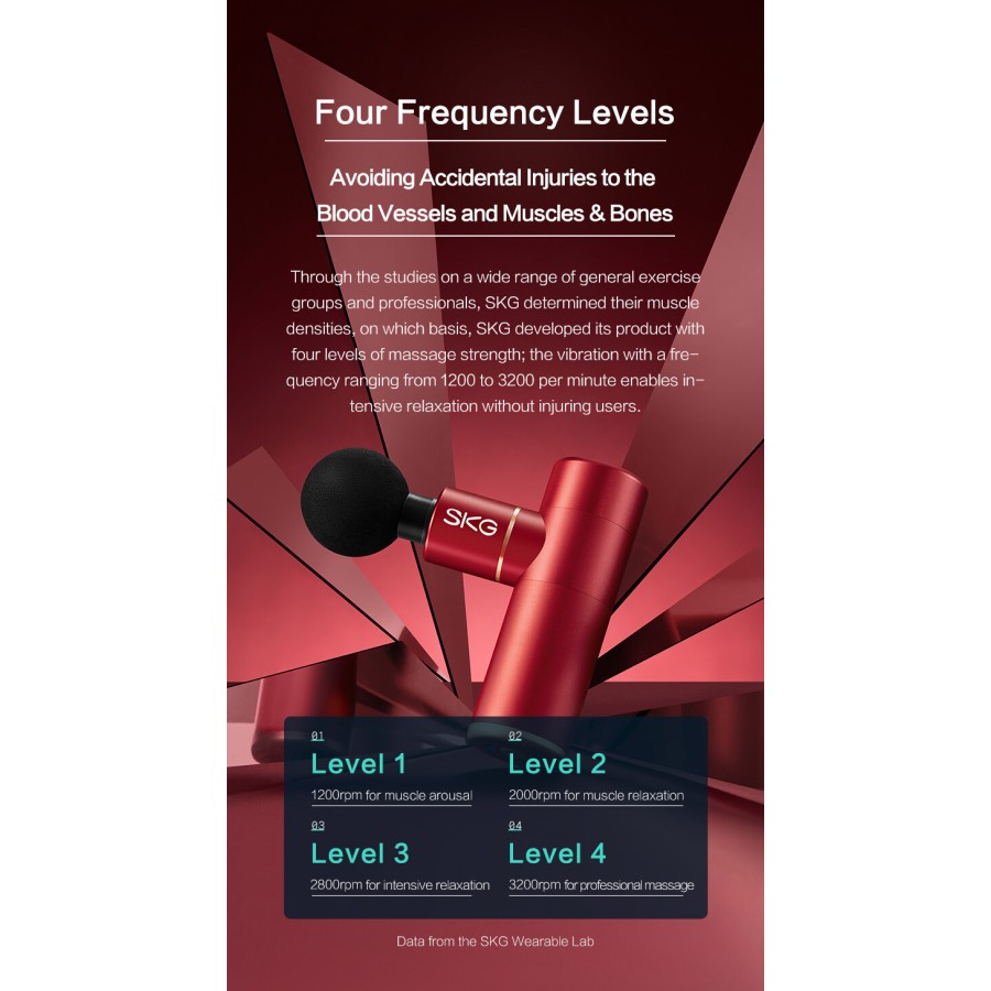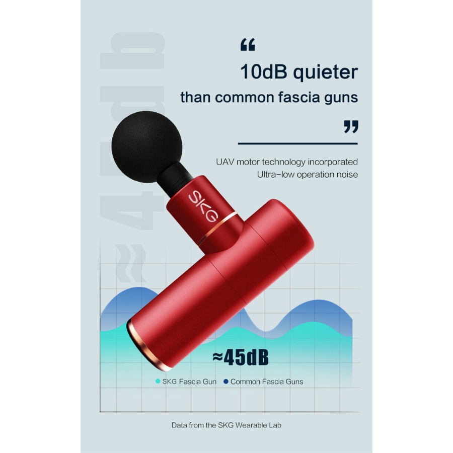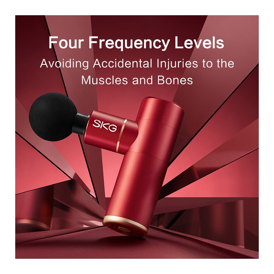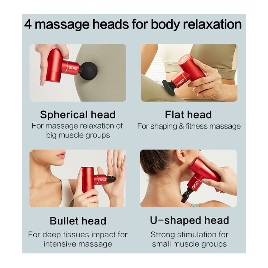 SKG Gun F3mini red - електричний міні-масажер для розслаблення м'язів і полегшення м'язового болю. Завдяки компактним розмірам з масажером дуже зручно працювати, а можливість змінювати насадки, швидкість і рівень інтенсивності дозволяє зробити масаж і розслаблюючі процедури для будь-якого користувача максимально ефективними.
