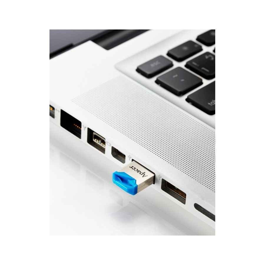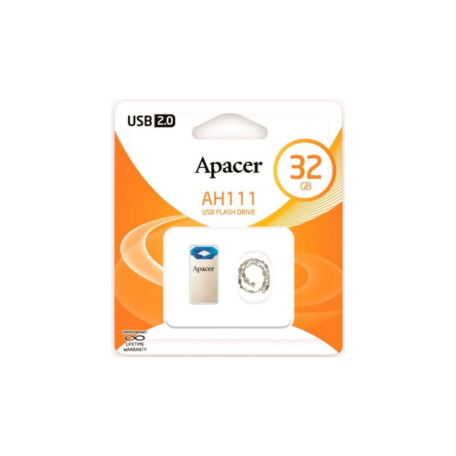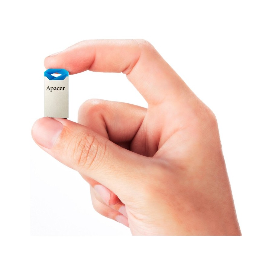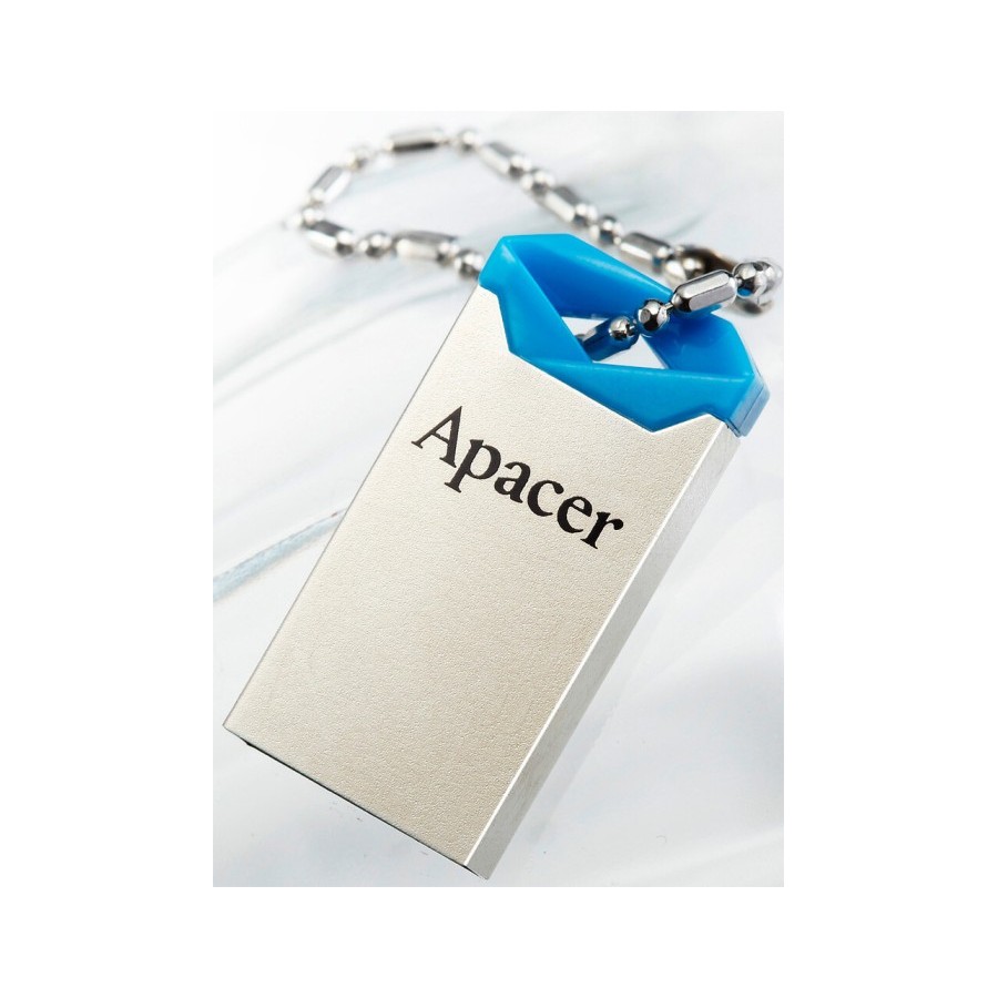 Металевий ланцюжок дозволяє підвісити накопичувач до брелка або смартфону. Ультракомпактний і легкий, USB флеш накопичувач використовує передову технологію COB і має підвищену водостійкість, пиленепроникність і удароміцність. Підтримує спеціальну програму-архіватор Apacer Compression Explorer (ACE), скорочуючи обсяг даних, що зберігаються.