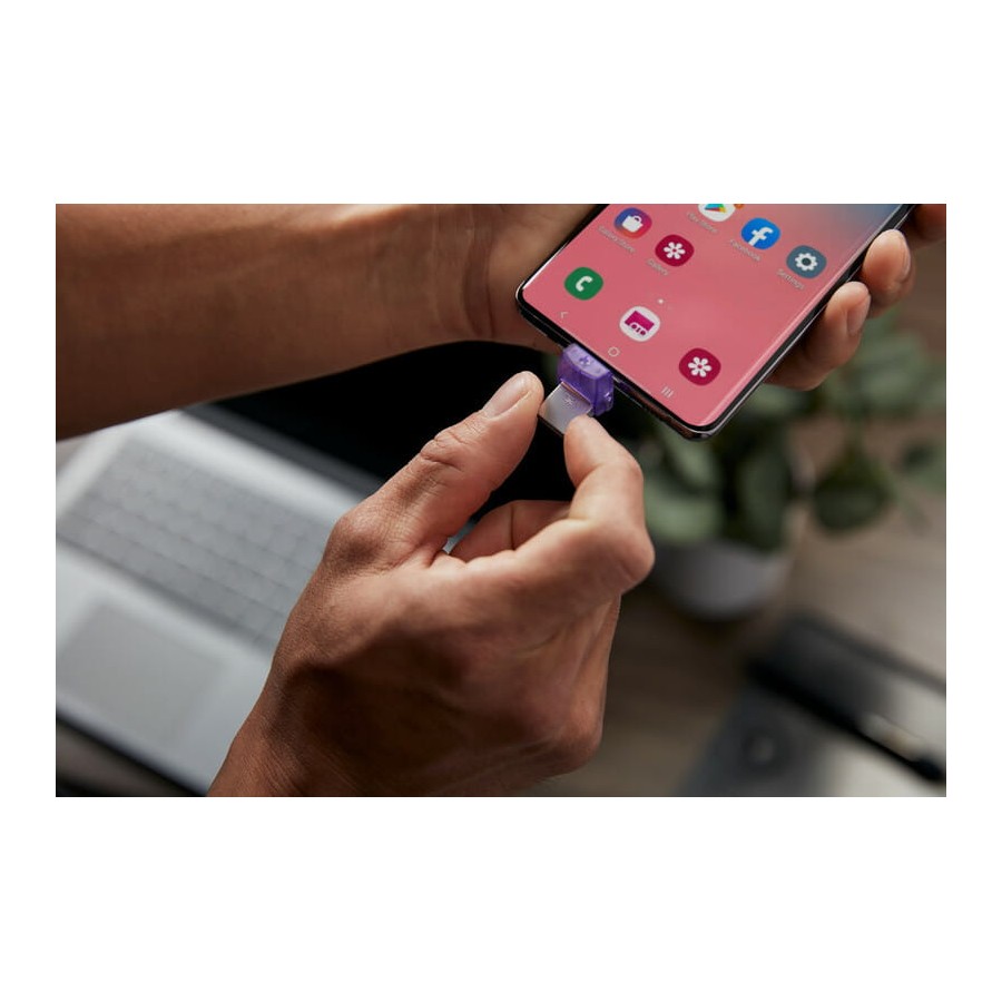 Завдяки подвійному інтерфейсу DataTraveler microDuo 3C сумісний як з новими портами USB Type-C, так і з традиційними USB Type-A. Це чудовий спосіб звільнити місце на смартфоні або планшеті з додатковою ємністю до 256 ГБ для зберігання фотографій та відео. Накопичувач відрізняється привабливим форм-фактором та забезпечує зручне підключення з автоматичним налаштуванням конфігурації. Швидко передавайте файли між пристроями завдяки швидкості читання USB 3.2 Gen 1 до 200 МБ/с.