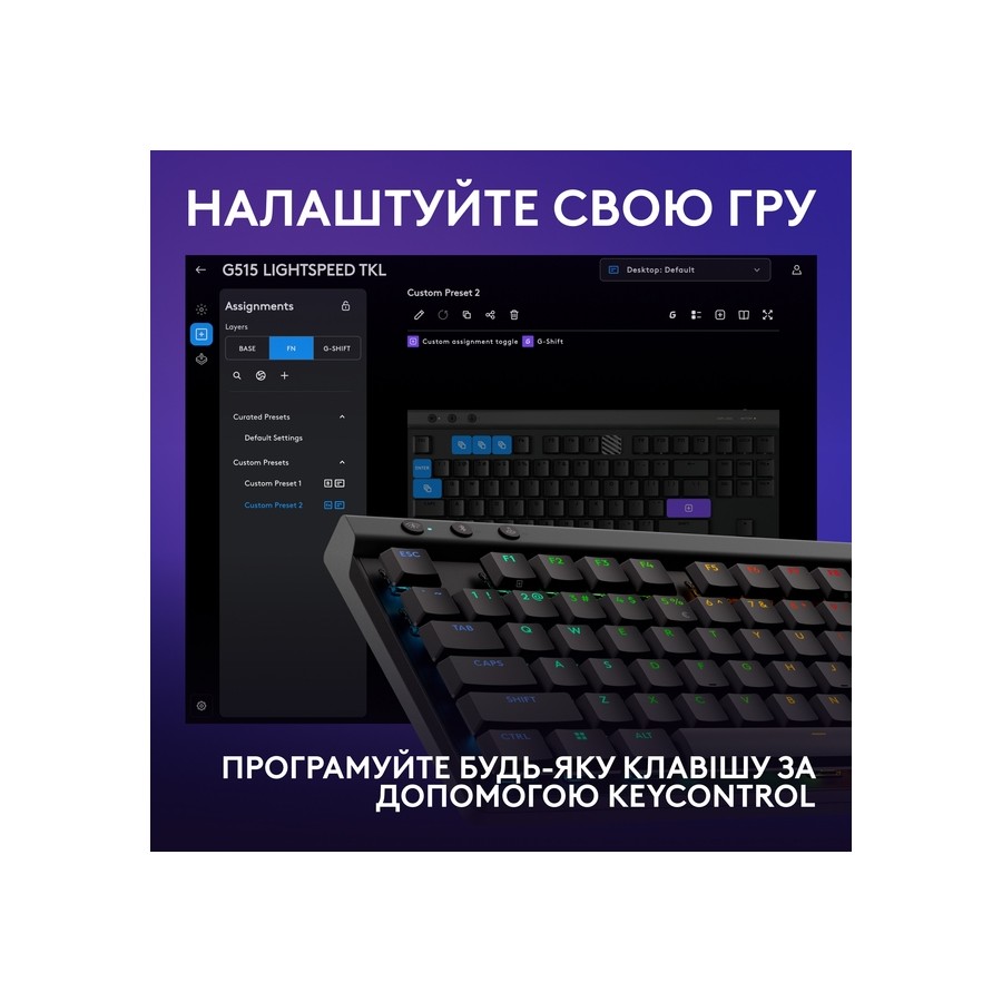 Клавіатура LOGITECH G515 LIGHTSPEED TKL Wireless Gaming, Black (920-012538)