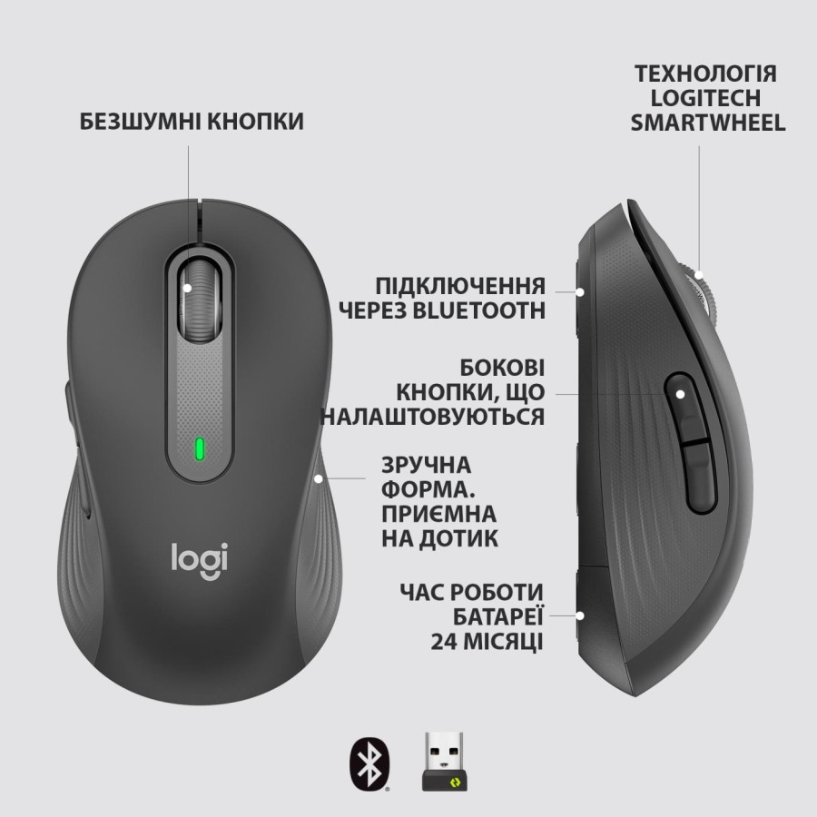 Пластмасові деталі миші Signature M650 містять пластик, що складається із вторинних матеріалів. Так компанія підтримує вторинну переробку та знижуємо обсяги викидів вуглекислого газу у навколишнє середовище.