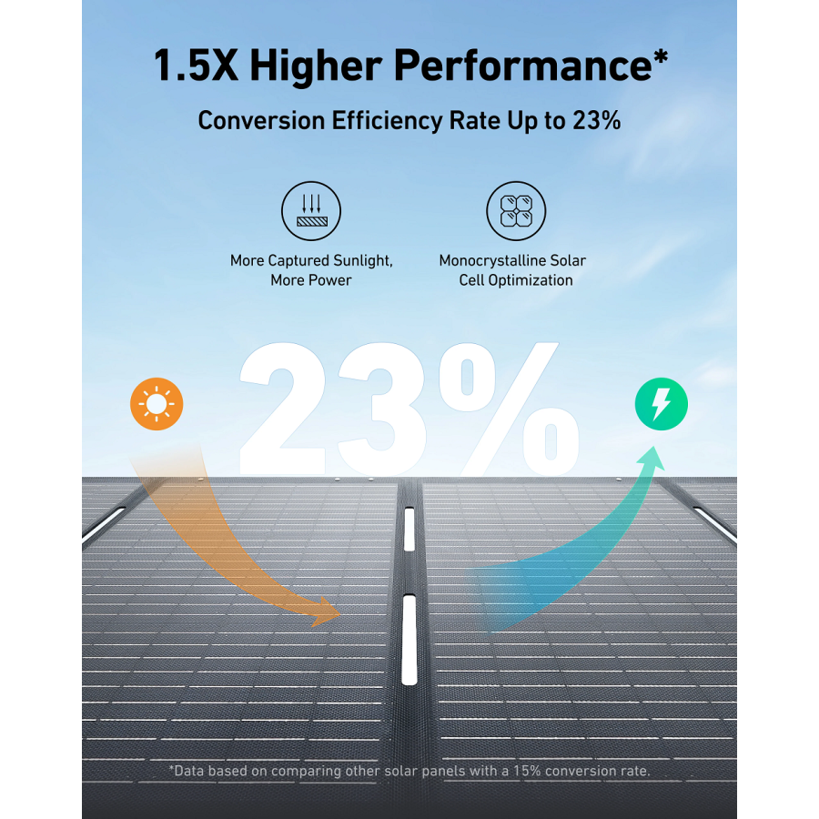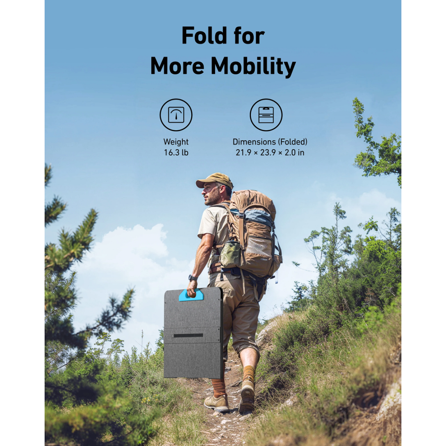 Складана сонячна панель, розроблена для подорожей, компактна, тож ви можете мати безперервну енергію для швидкої зарядки пристроїв у дорозі.