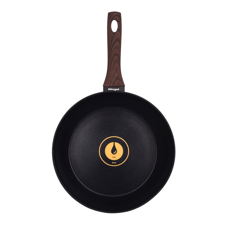 В кожну сковороду RINGEL інтегрована перша в світі система дозування олії. Найменша поділка системи відповідає 5 мл олії, а більша – 10 мл олії. За допомогою цієї системи ви зможете легко та швидко приготувати водночас здорові та смачні страви з використання мінімуму жиру та з максимальним збереженням корисних речовин у страві.