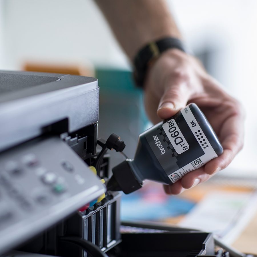 Щоб струменевий друкувальний пристрій працював оптимально, вибирайте Brother BT-D60BK- оригінальну пляшку з чорним чорнилом для заправки вбудованого контейнера. Ці чорнила створені таким чином, що вони витрачаються набагато повільніше, ніж звичайні. Водночас гарантується чудова якість друку, яким славиться продукція Brother. BT-D60BK - це оптимальне співвідношення ціни і якості.