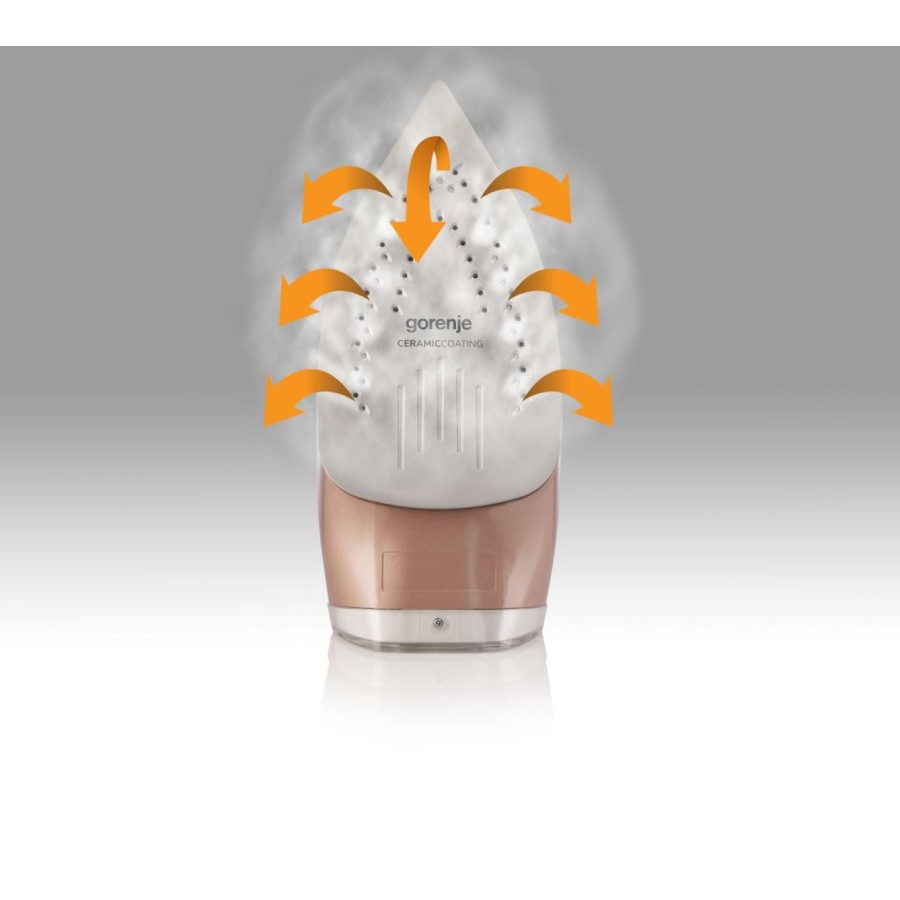 Праска Gorenje SIH3200WR призначена для щоденного догляду за одягом і домашнім текстилем. Керамічна підошва XL добре проводить тепло, рівномірно розподіляє його по всій поверхні та зменшує статичну електрику. Плавне ковзання робить рухи по тканині контрольованими, а збільшена площа підошви дає змогу обробляти більшу ділянку за один прохід, зменшуючи витрати часу та енергії.