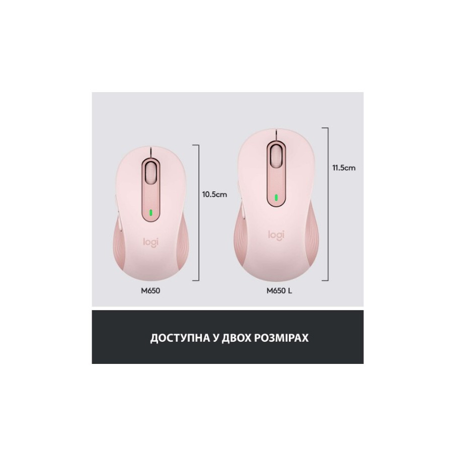 З Logitech Signature M650 L ви можете працювати в будь-якому місці та встигати більше. Завдяки ергономічній формі, гумовим бічним вставкам і м'якій зоні під великим пальцем ви здатні повністю зосередитися на роботі, забувши про незручності або неточні рухи.