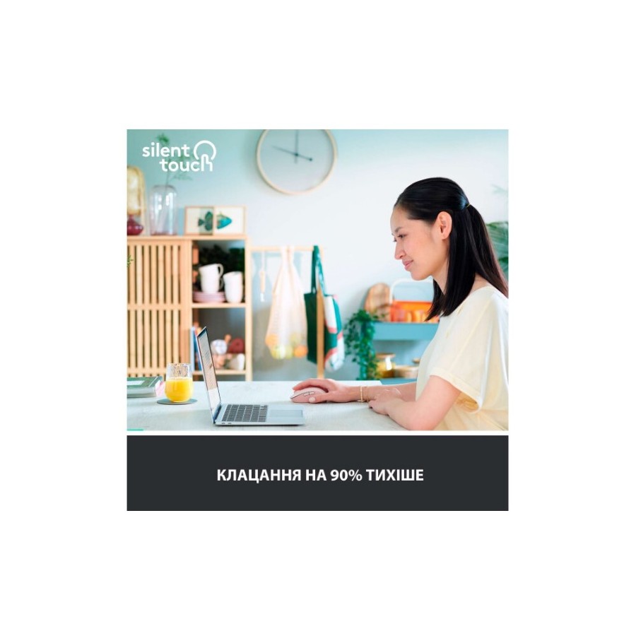 Ніяких дратівливих шумів. Завдяки технології Logitech SilentTouch миша працює практично безшумно, знижуючи гучність клацань до 90%, щоб ви могли повністю зосередитися на роботі і не відволікатися на сторонні звуки. Технологія Logitech Options+ дає можливість призначити бічним кнопкам ті функції, які зроблять вашу роботу легшою та ефективнішою. Режим енергозбереження забезпечує до 24 місяців роботи на одному джерелі живлення (батарейка типу АА).