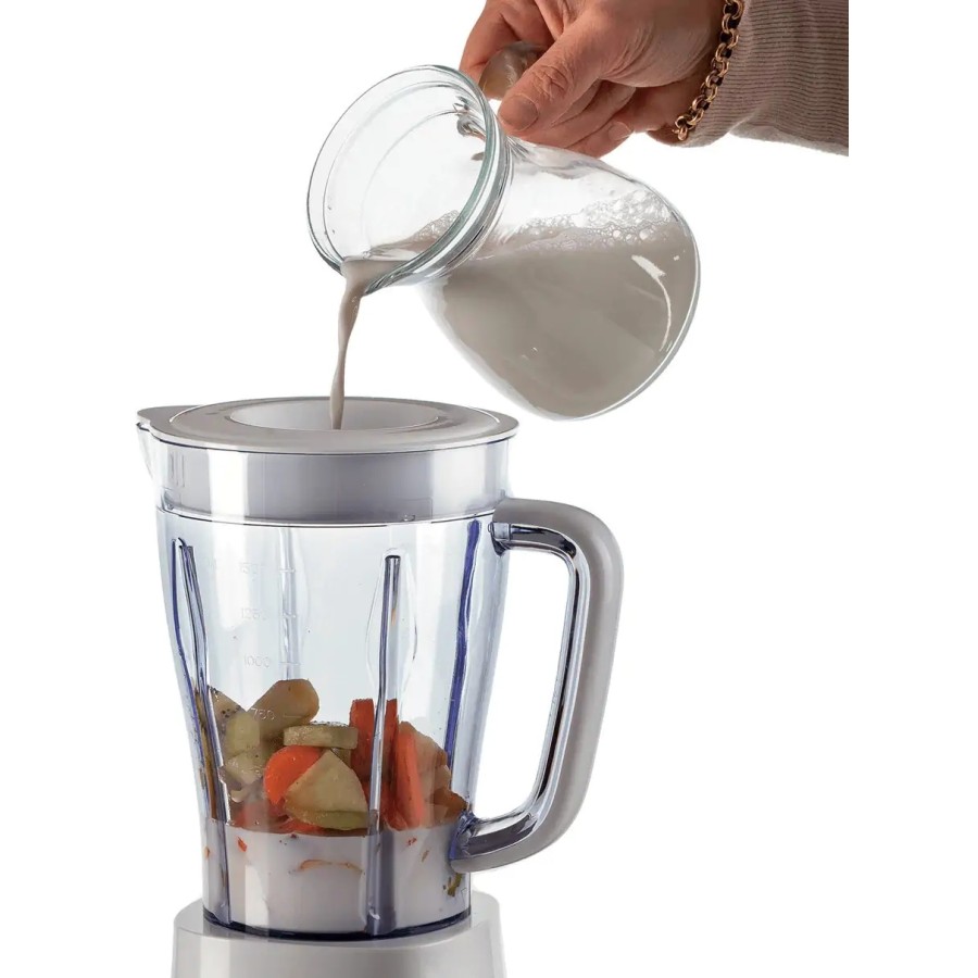 Блендер для сніданку універсальний і практичний, ідеально підходить для приготування коктейлів, молочних коктейлів і смузі. Його характеристики роблять його ідеальним для змішування багатьох інгредієнтів, навіть льоду. Завдяки 4 лезам з нержавіючої сталі та 2 швидкостям із функцією Pulse продуктивність буде бездоганною. Основа блендера Breakfast Blender має нековзні ніжки з функціями, які підвищують його стійкість.