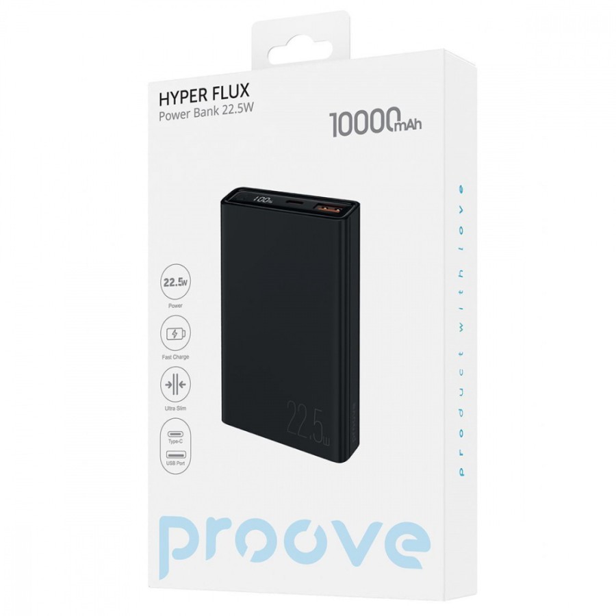 Proove Hyper Flux — повербанк для різних типів пристроїв! Основні характеристики: - Матеріал: ABS; - Акумулятор: літій-полімерний; - Вхід: Туре-С; - Об'єм батареї: 10 000 мАг; - Підтримка всіх протоколів швидкого заряджання. Універсальність Proove Hyper Flux оснащена портом Type-C та USB, що дозволяє заряджати два пристрої з двома різними типами підключення одночасно. Завдяки розміру та простоті дизайну його можна носити у сумці або рюкзаку. Технічні характеристики Повербанк обладнаний виходом Type-C максимальною потужністю 22.5W. Type-C: 5V/3A, 9V/2A, 12V/1.5A; USB: 4.5V/5A, 5V/4.5A, 5V/3A, 9V/2A, 12V/1.5A ; Type-C: 5V-3A, 9V/2.22A, 12V/1.67A. Захисні властивості Hyper Flux має вбудовану інтелектуальну систему яка розпізнає під'єднаний пристрій і регулює подачу енергії, оберігаючи пристрої від надлишку струму або напруги, високих температур і короткого замикання.