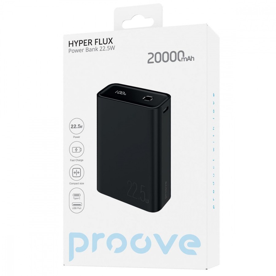 Proove Hyper Flux оснащена портом Type-C та USB, що дозволяє заряджати два пристрої з двома різними типами підключення одночасно. Завдяки розміру та простоті дизайну його можна носити у сумці або рюкзаку.