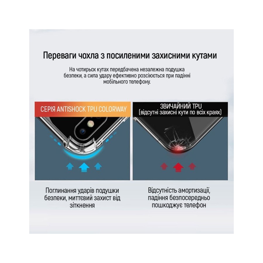 Нова серія чохлів для смартфонів від ColorWay - TPU AntiShock. Усім нам знайома ситуація, коли наш улюблений смартфон падає кутом на плитку, ламінат, будь-яку іншу поверхню або у дитини вислизає наш герой у той час, як він грає у чергову гру. Після цього ми зазвичай купуємо новий смартфон або оплачуємо дорогий ремонт. Основною фішкою даного чохла є те, що він може допомогти, мінімізувати та уберегти вас від подібних ситуацій. Купити ColorWay TPU AntiShock Clear для Xiaomi 14T Pro Ви можете, оформивши замовлення у нас на сайті.