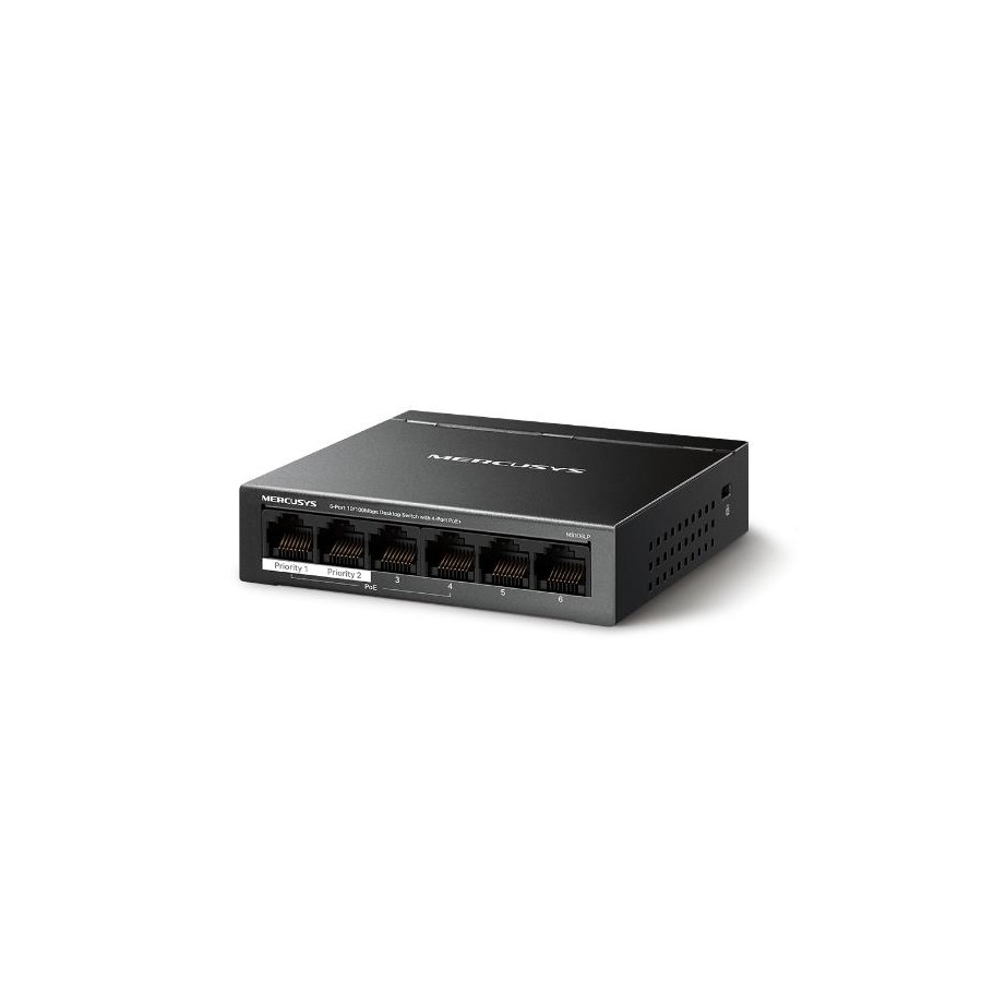 Комутатор 6-портовий 10/100 Мбіт/с ( 4 портів PoE+), MS106LP MERCUSYS