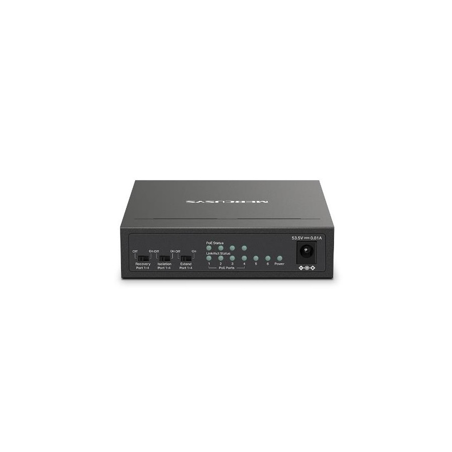 • 6 Ports: 6× 10/100 Mbps RJ45 ports with 4 PoE+ ports