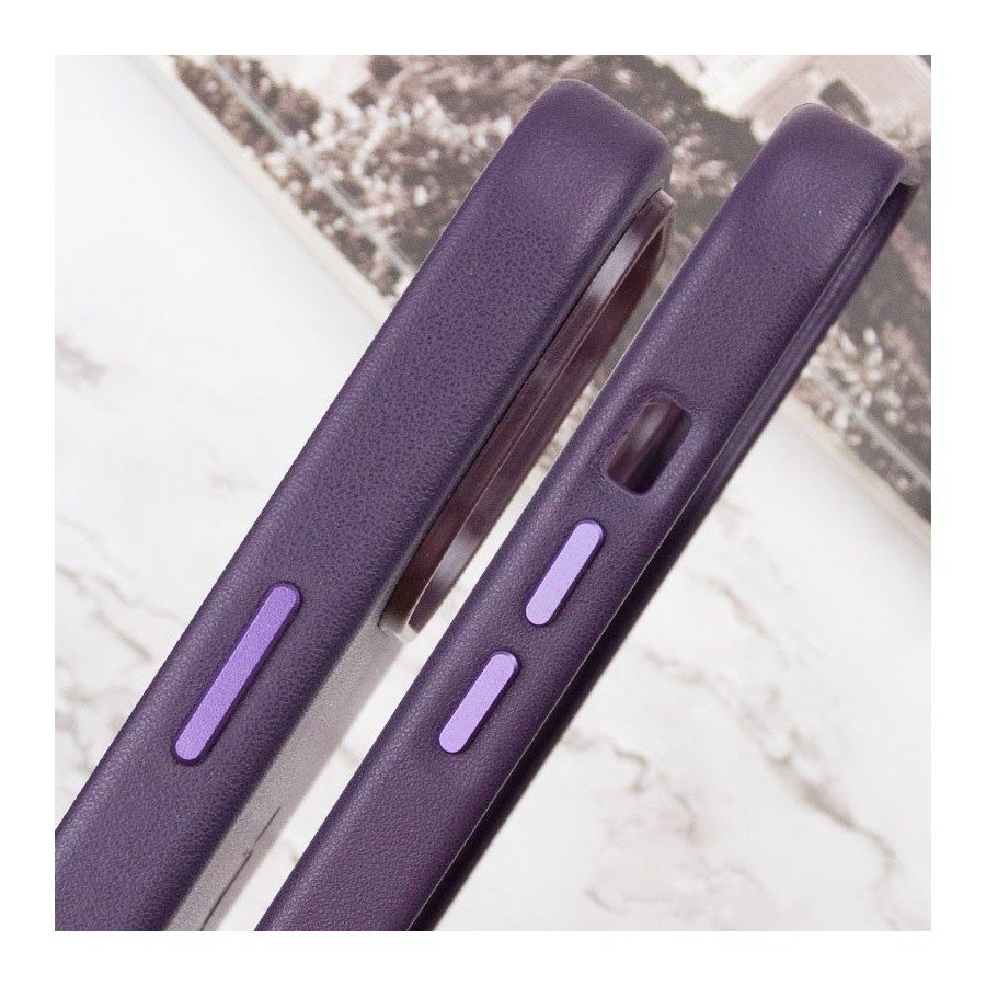 Шкіряний чохол Leather Case (AAA) with MagSafe and Animation для Apple iPhone 15 (6.1") Dark Purple