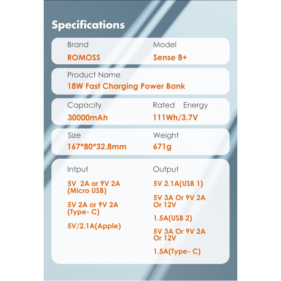 Портативна батарея Romoss 30000mah Sense8+ (PHP30-401-02) білий