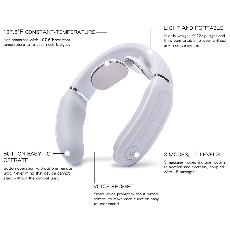 Портативный легкий микротоковый массажер для шеи SKG 4356E подходит для ежедневного пользования каждым человеком. После продолжительного рабочего дня за столом у компьютера или с мобильным телефоном, шея испытывает дискомфорт, а долговременное воздействие приводит к серьезным проблемам со здоровьем. Избежать негативных последствий поможет компактный прибор анатомической формы, идеально подходящий для шейной зоны.
