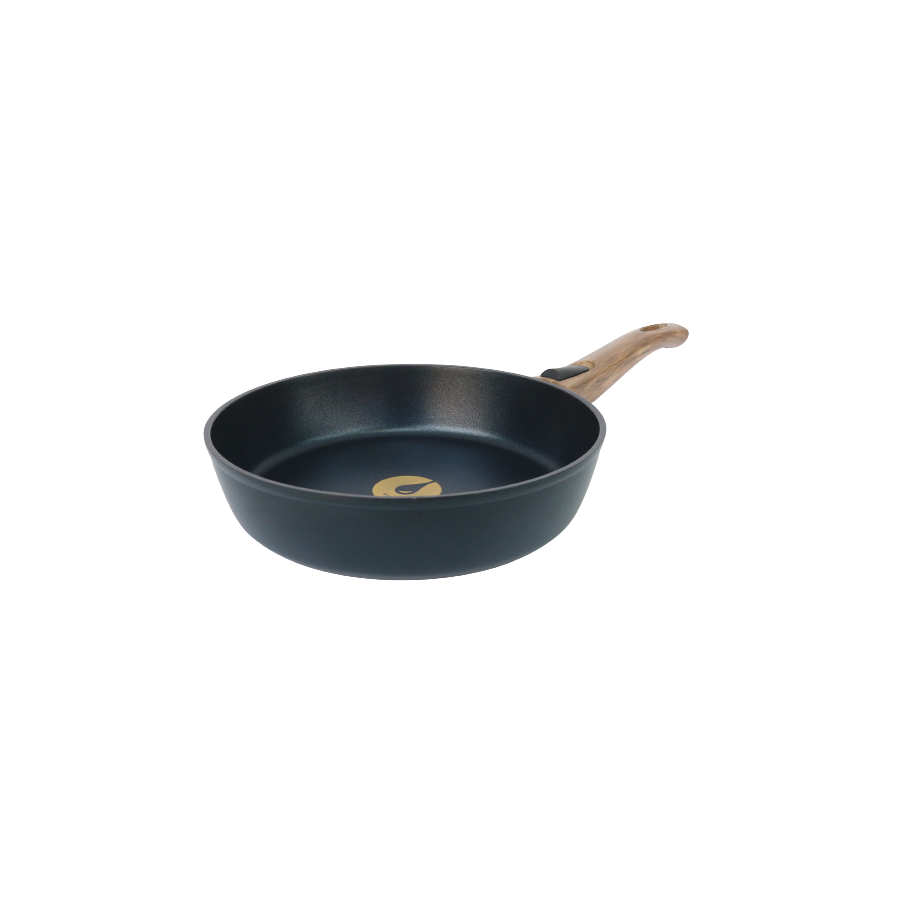 Виготовлена з кованого алюмінію, з товщиною стінок 4 мм, ця сковорода нагрівається швидко та максимально рівномірно. Це значно прискорює приготування їжі, а також перешкоджає пригорянню і нерівномірному просмажуванню продуктів.