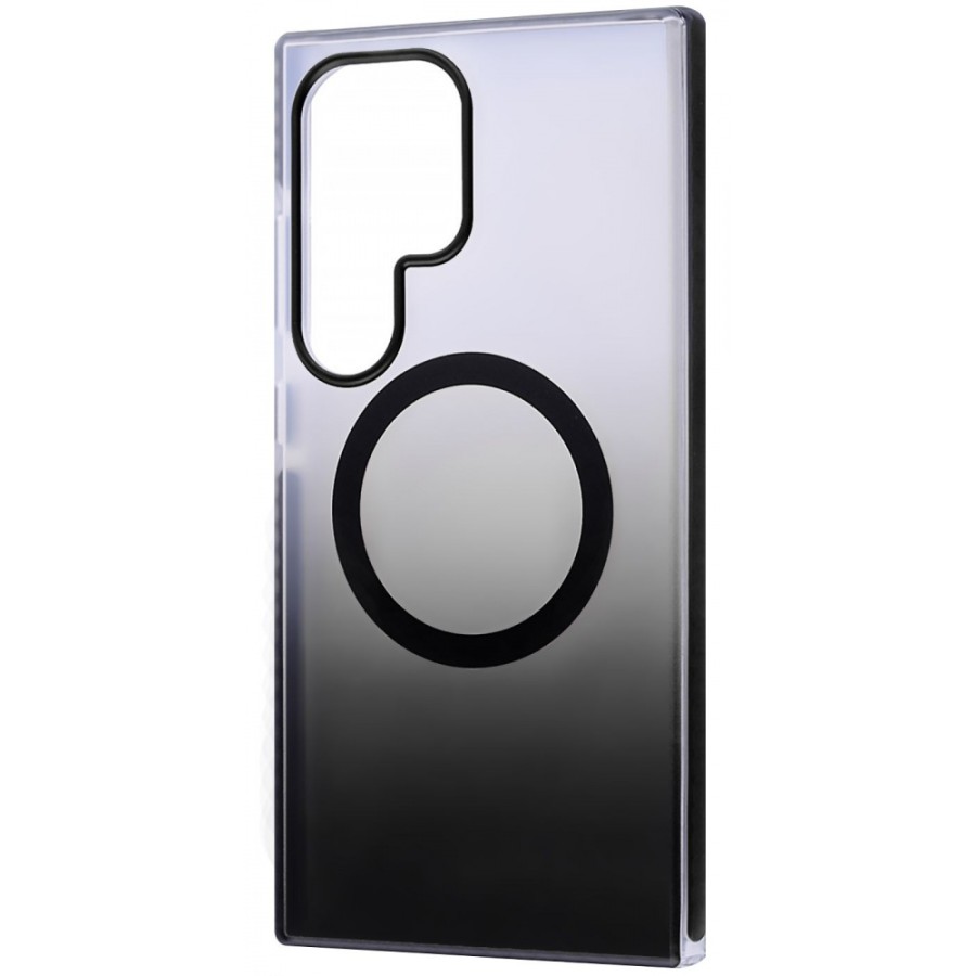 Чохол має цікаве градієнтне забарвлення, яке плавно переходить від прозорого до більш насиченого. Матове покриття гарно поєднується з обрисами магніту, який не закриває логотип смартфона на задній кришці.
