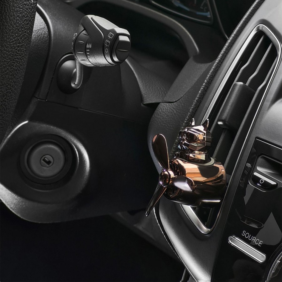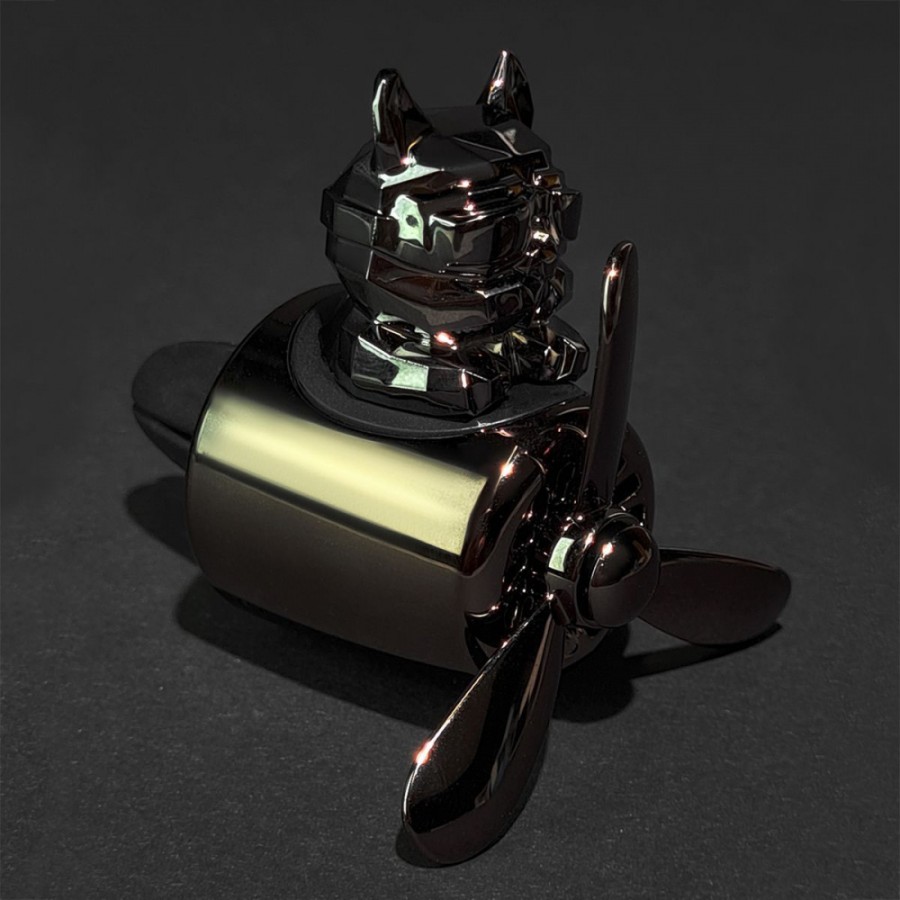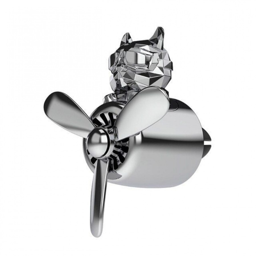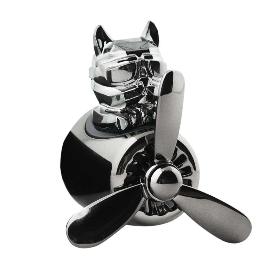 Pilot Bulldog — оригінальний і кумедний автомобільний ароматизатор компактного розміру. Основні характеристики: - виготовлений із пластику; - кріпиться на решітку вентиляції; - основа — ароматизована таблетка; - безпечний для дітей і вагітних; - у комплекті дві запасні таблетки. Яскравий і практичний дизайн Ароматизатор зображує брутального бульдога в аеромобілі з пропелером. Встановлюється на решітку повітропроводу за допомогою еластичних фіксаторів. Під час циркуляції повітря гвинти пропелера обертаються, видаляючи з салону неприємні запахи та розповсюджуючи делікатний аромат. Він створює відчуття чистоти та свіжості, піднімає настрій під час поїздки. Ощадний і безпечний Тверда таблетка не містить спирту і служить довше порівняно з рідкими освіжувачами повітря. Використання безпечне для дітей і вагітних. У комплекті постачаються два змінні картриджі з різними запахами.
