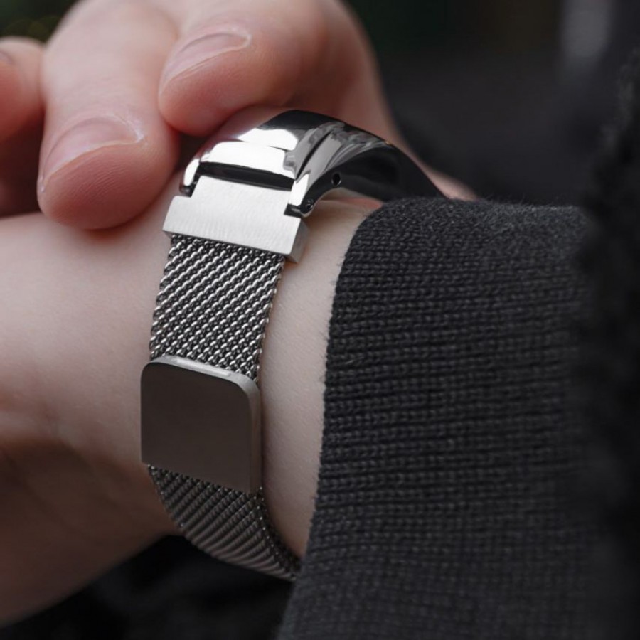 Основні характеристики: - створений для Xiaomi Mi Band; - виготовлений з нержавіючого металу; - чотири кольори на вибір; - металева застібка; - надійна фіксація на руці. Особливості дизайну Блискучий металевий браслет, яким власника буде пишатися. Виконаний в незвичайному стилі з ланками у вигляді перснів поєднаних іншими кільцями. Що робить його незвичайним та цікавим. Такий ремінець тільки підкреслить тендітність та привабливість власника Комфорт і безпека Завдяки якісному нержавіючому металу ремінець довго прослужить власнику. Міцна металева застібка добре зафіксує ремінь на руці, і дозволить не турбуватися про втрату годинника. А завдяки формі ланок він не буде натирати шкіру та дозволить їй дихати.