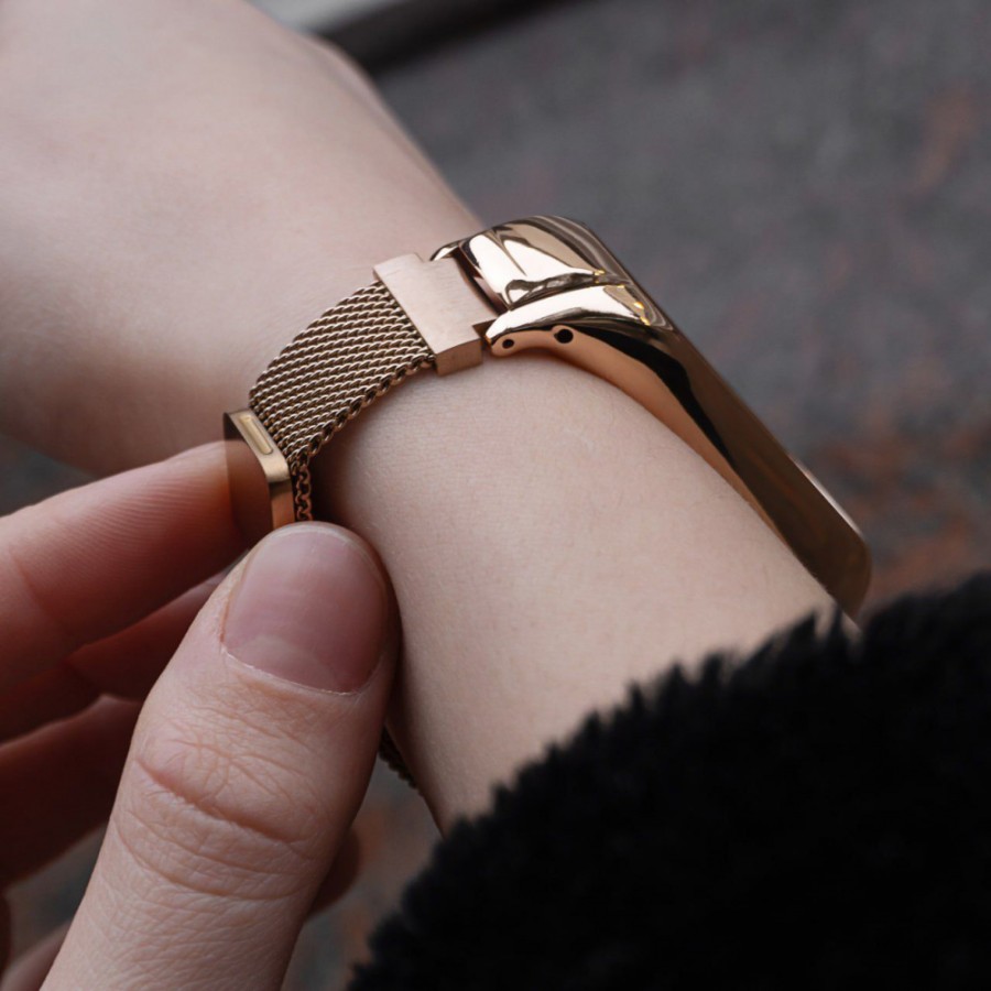 Блискучий металевий браслет, яким власника буде пишатися. Виконаний в незвичайному стилі з ланками у вигляді перснів поєднаних іншими кільцями. Що робить його незвичайним та цікавим. Такий ремінець тільки підкреслить тендітність та привабливість власника