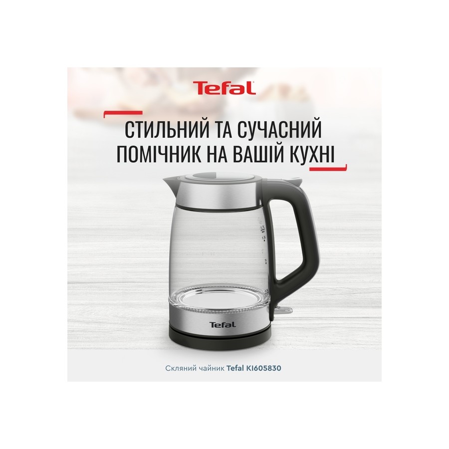 Електрочайник Tefal Glass Kettle 1.7л, скло, з підсвіткою, біло-срібний (KI605B30)