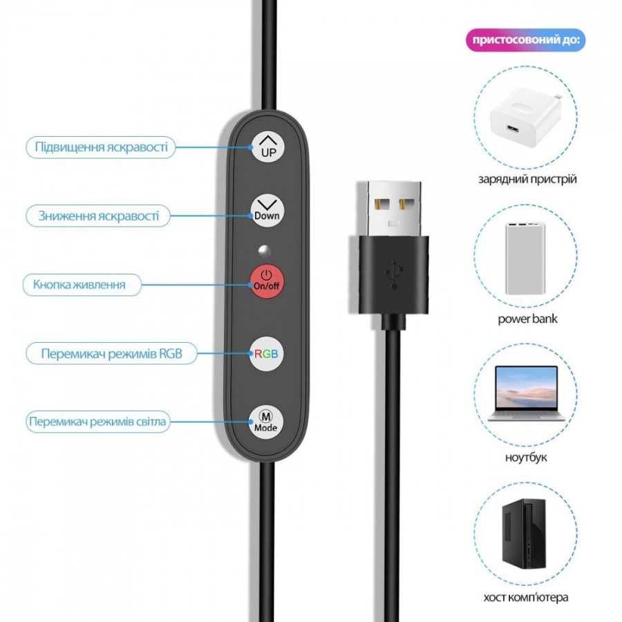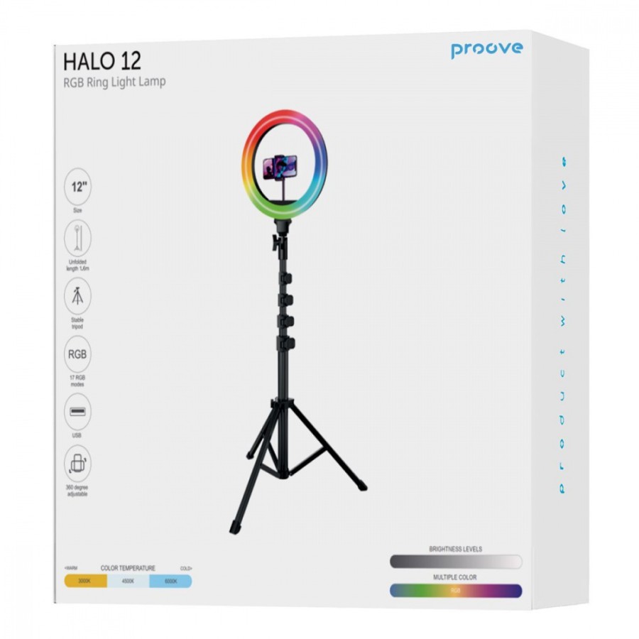 Proove Halo – це не просто лампа, трипод і штатив в одному корпусі, а й функціональний елемент інтер'єру. Яскраве RGB-підсвічування дає змогу налаштувати освітлення під свій настрій, а високоякісні матеріали гарантують надійність і довговічність.