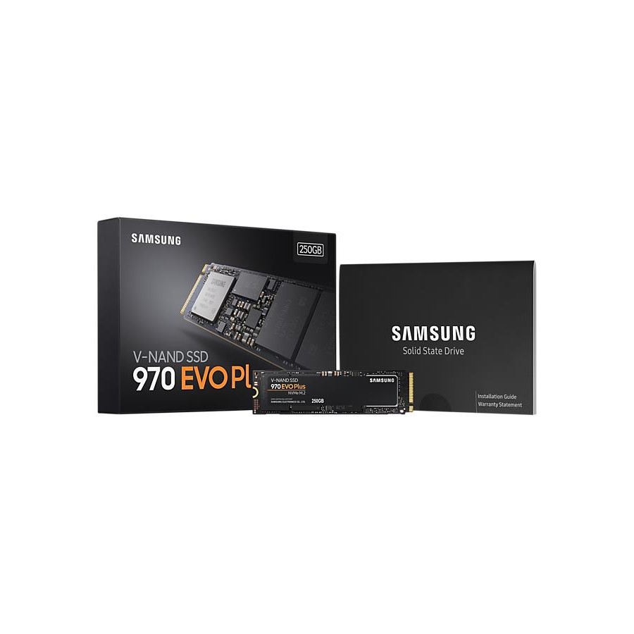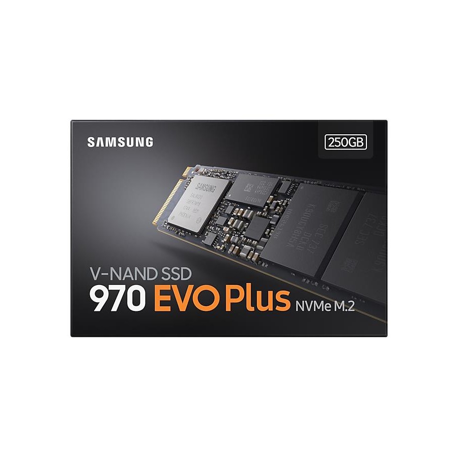 Samsung SSD 970 Evo Plus 250GB The ultimate in performance, upgraded. Faster than the 970 EVO, the 970 EVO Plus is powered by the latest V-NAND technology and firmware optimisation. It maximises the potential of NVMe bandwidth for unbeatable computing in capacities up to 2TB, with reliability of up to 1,200 TBW. The 970 EVO Plus reaches sequential read/write speeds up to 3,500/3,300 MB/s, up to 53%‡ faster than the 970 EVO. The latest V-NAND—which brings greater NAND performance and higher power efficiency—along with optimised firmware, a proven Phoenix controller and Intelligent TurboWrite boost.