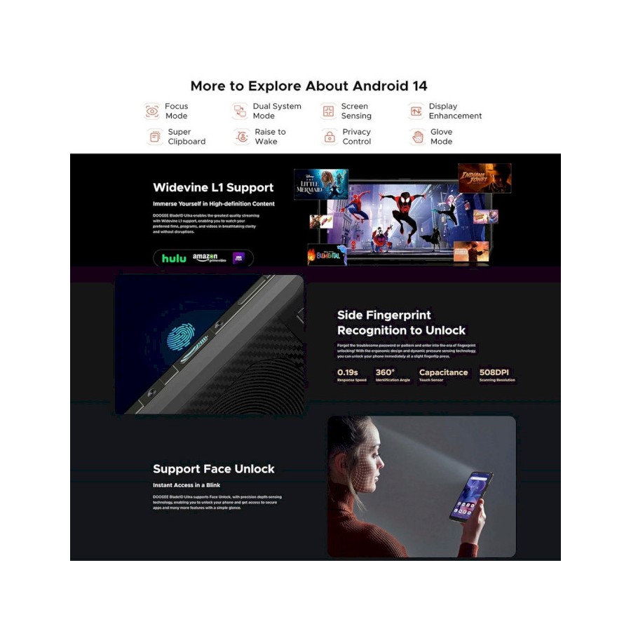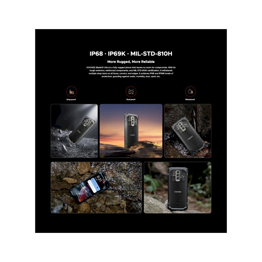 Doogee Blade 10 Ultra - це стильний і потужний смартфон, який поєднує в собі сучасні технології та елегантний дизайн. Завдяки високій продуктивності, він забезпечує швидку та стабільну роботу в будь-яких умовах, а його камера дозволяє робити яскраві та детальні знімки. Міцна конструкція пристрою гарантує надійність, а довговічна батарея дозволяє користуватися телефоном протягом тривалого часу без підзарядки.