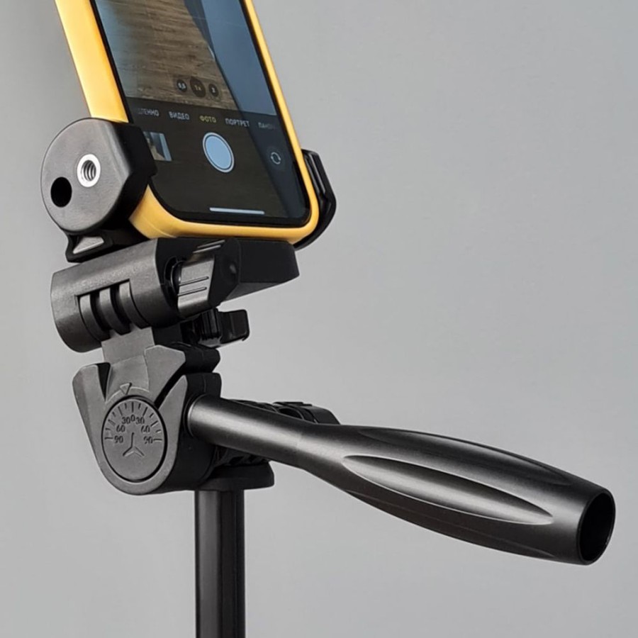 Крепление для телефона можно вращать на 360°, что позволяет фотографировать и снимать в горизонтальном или вертикальном положении экрана.