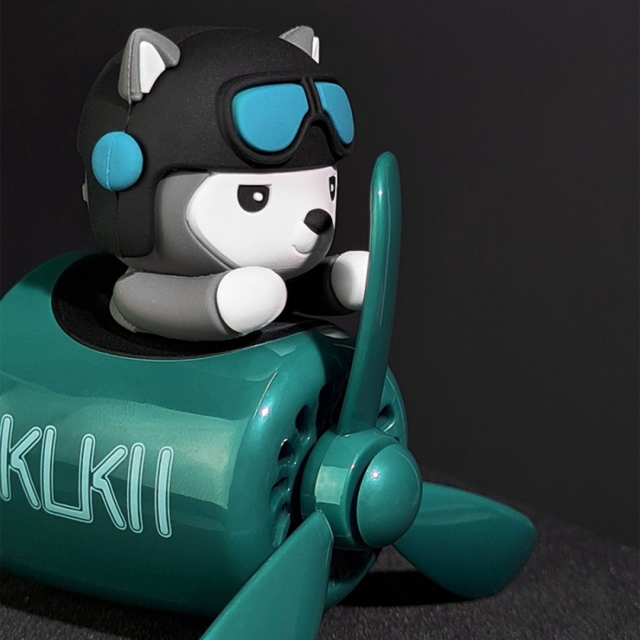 Ароматизатор зображує песика хаскі в аеромобілі з пропелером. Встановлюється на решітку повітропроводу за допомогою еластичних фіксаторів.