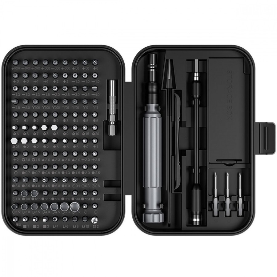Мультифункціональний набір для будь-яких робіт! Основні характеристики: - Матеріал коробки: ABS-пластик; - Матеріал бітів: CRV; - Розмір бітів: C4xL28мм, C3xL35мм; - Розмір продукту: 153х105х52мм; - Вага: 602г. Матеріали Корпус викруток виготовлений із легкого алюмінію, біти з нікелю забезпечують міцність і зносостійкість. Функції Набір включає 150 викруток усіх розмірів, спеціально розроблених для точних робіт і складних завдань. Дизайн Компактний і ергономічний набір для максимальної зручності під час використання. Ідеальний вибір для професіоналів і домашнього майстра.