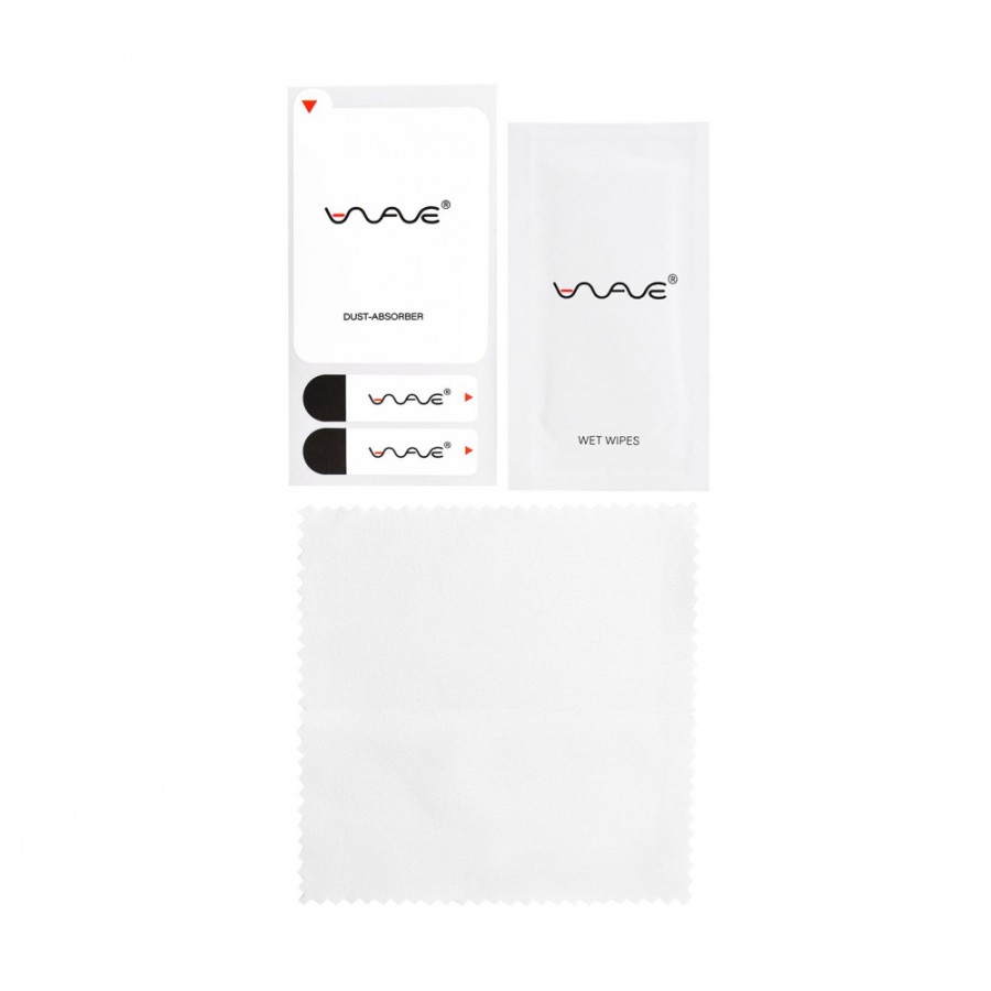 WAVE Edge to Edge постачається в пакованні, що містить все необхідне для наклеювання: наліпка для видалення порошинок з поверхні дисплея, а також вологу серветку та м'яку мікрофібру для його очищення.